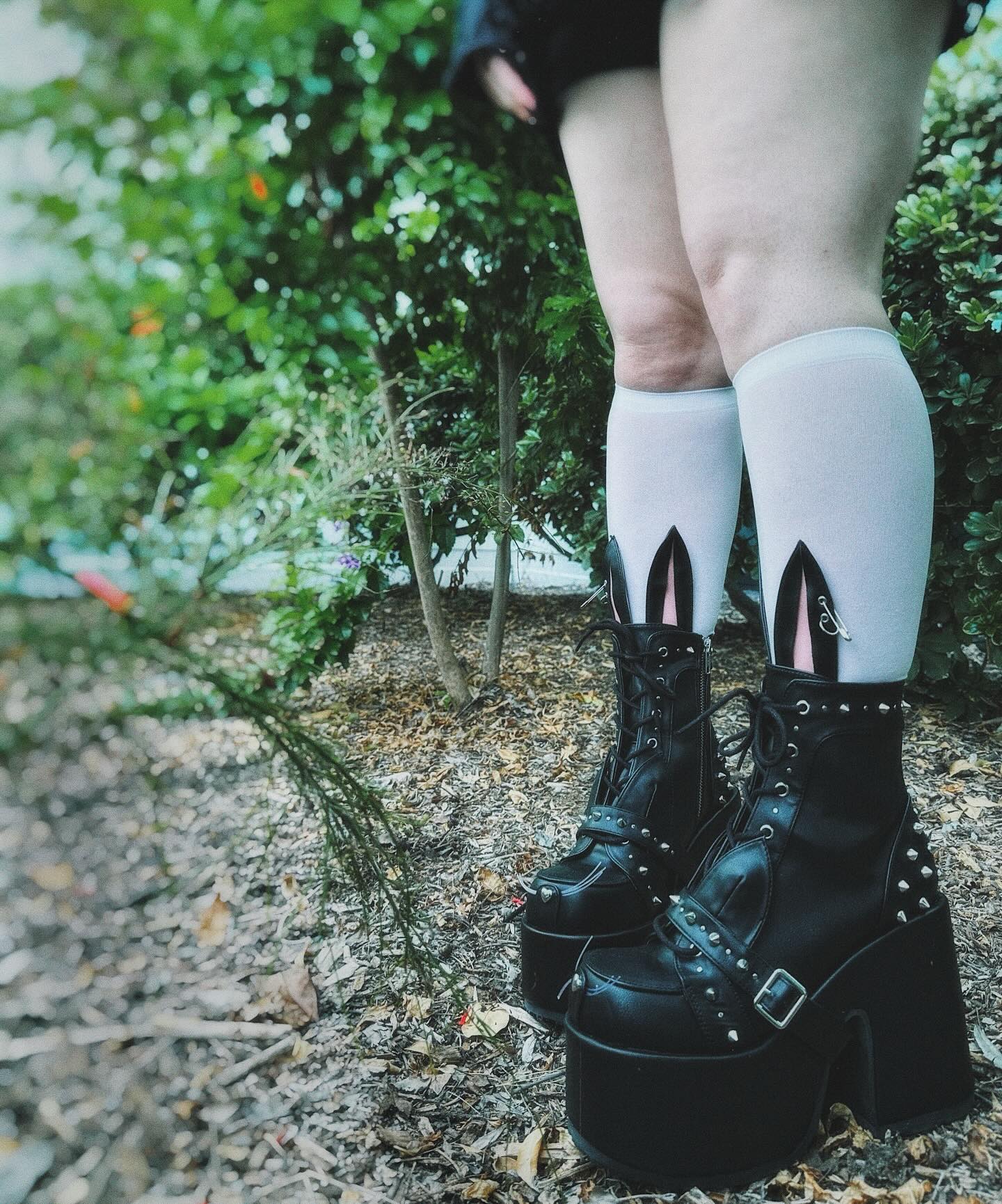 Stomp around in these fun 5" (12.7cm) chunky heels! These lace up front boots have a 3" (7.6cm) platform and feature interchangable cat/bunny ear designs as well as a spike & stud detail with an inside zipper closure.