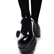 These Vegan Black Patent Single Strap Chunky Platform Mary Janes have been crafted from a faux leather patent offering a sleek and mirror like finish making these smooth to the touch. The padded insole and matching PU lining combined make these a pair you can wear comfortably throughout the day.