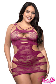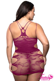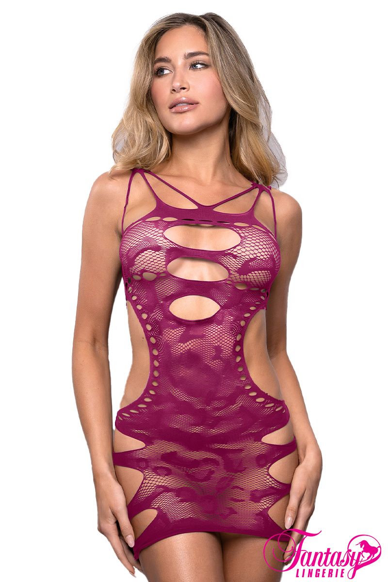 Very stretch leopard lace fitted dress with wide side cutouts, soft cups, a very strappy neckline and fixed elastic straps.