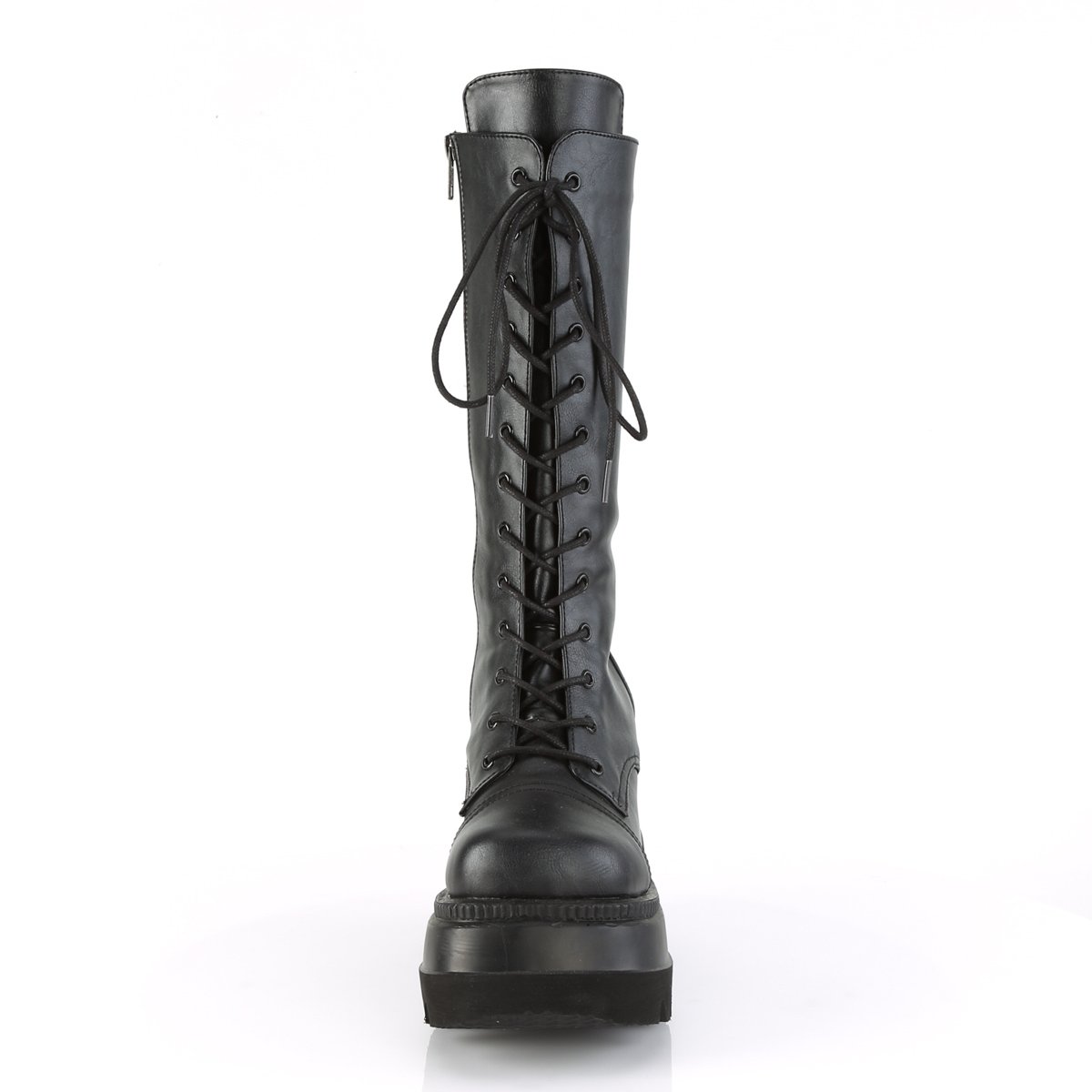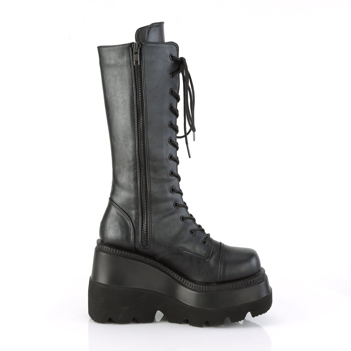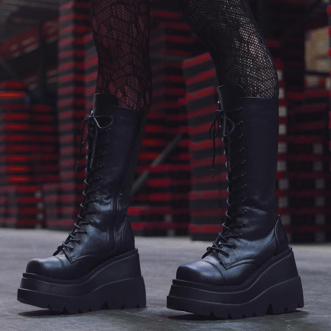Botte à plateforme compensée audacieuse de 4 1/2" (114 mm) à lacets, à lacets, au milieu du mollet, fermeture éclair intérieure pleine longueur.