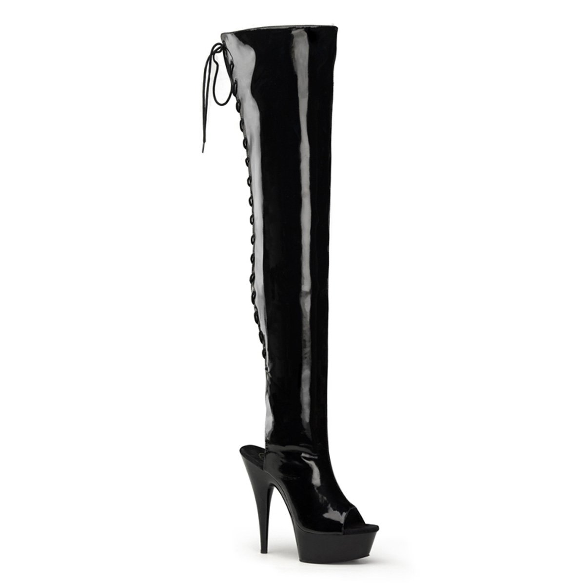 Cette botte au-dessus du genou possède un talon de 5,75 pouces, un lacet remonté dans le dos et un bout ouvert. Découvrez l’ultra sexy et qui vole la vedette Pleaser Des chaussures légendaires parmi les passionnés de mode, les artistes et les passionnés de chaussures sexy partout dans le monde!