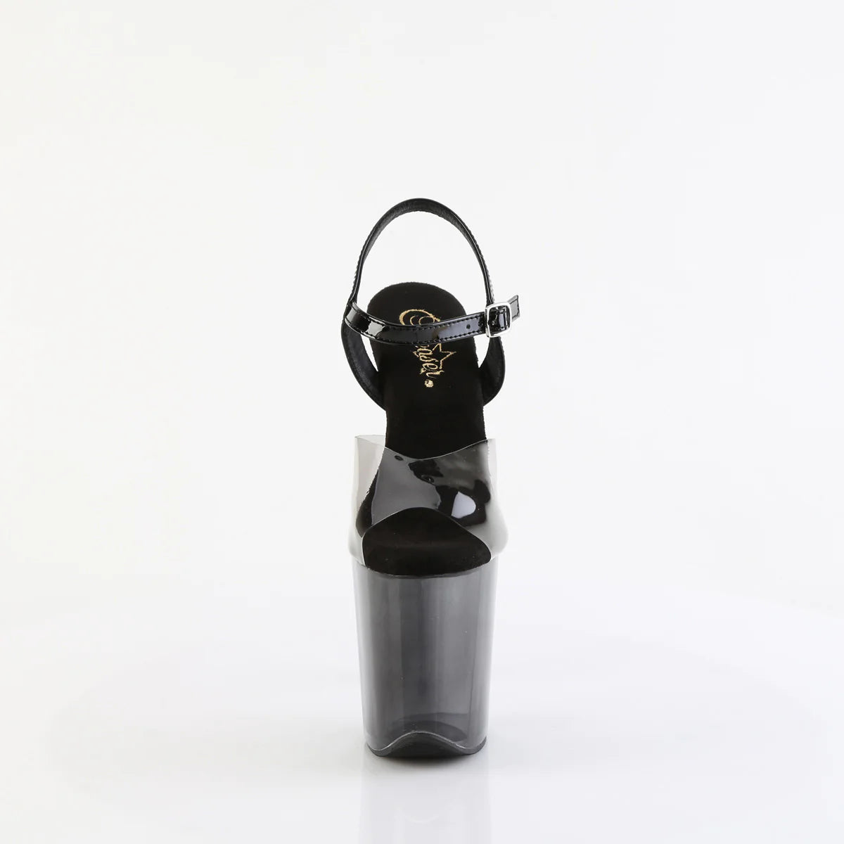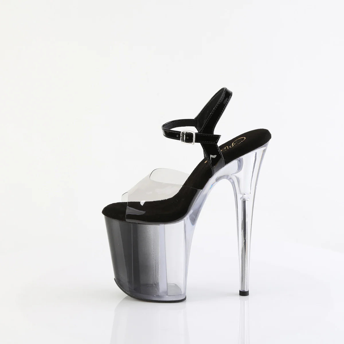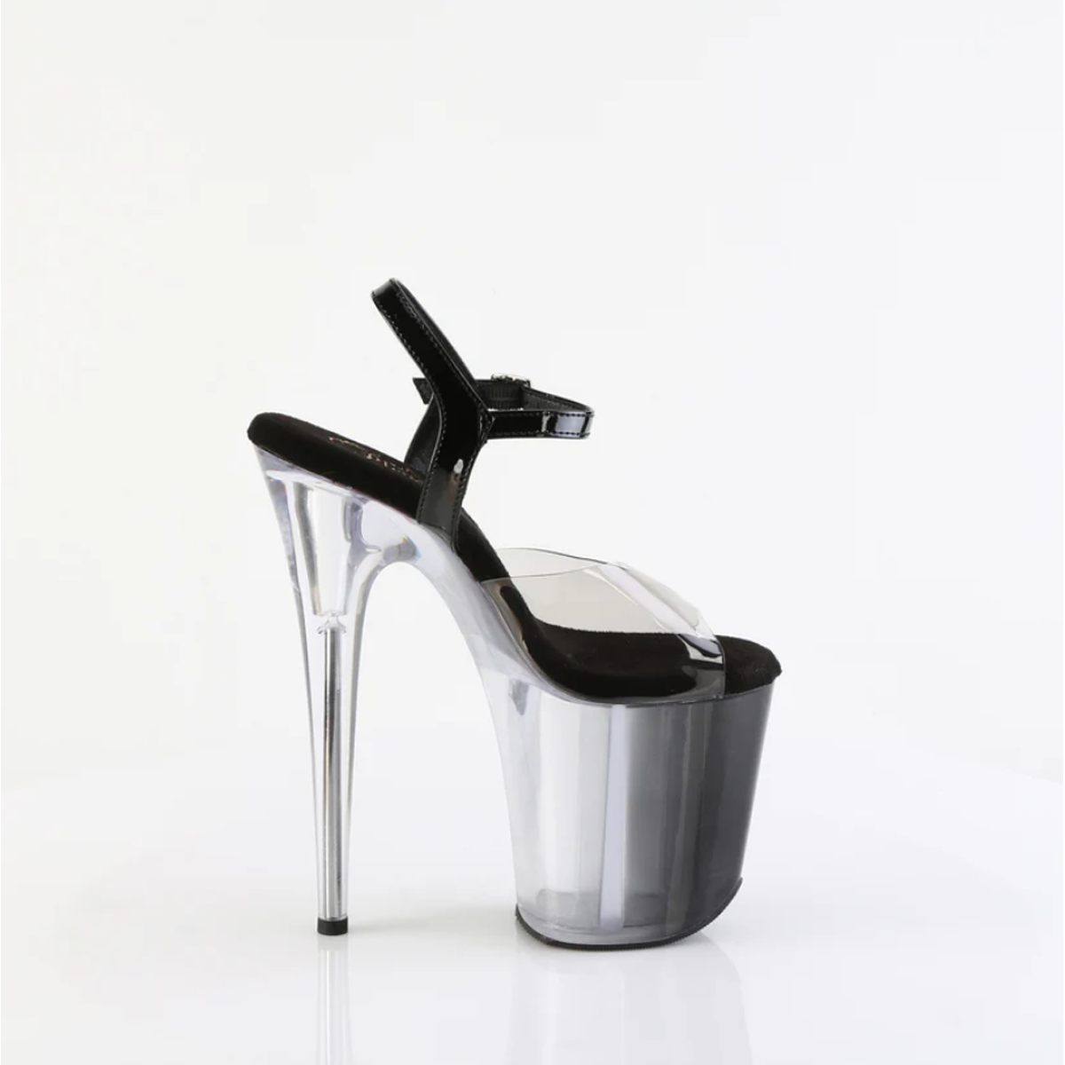 Ajoute une touche d’intrigue à votre look avec ces sandales à talons de 8 » (200 mm) et 4 » (100 mm) à bande à plateforme à la cheville. Avec un bas plateforme ombré transparent à noir, qui fait une déclaration audacieuse à chacun de vos pas.