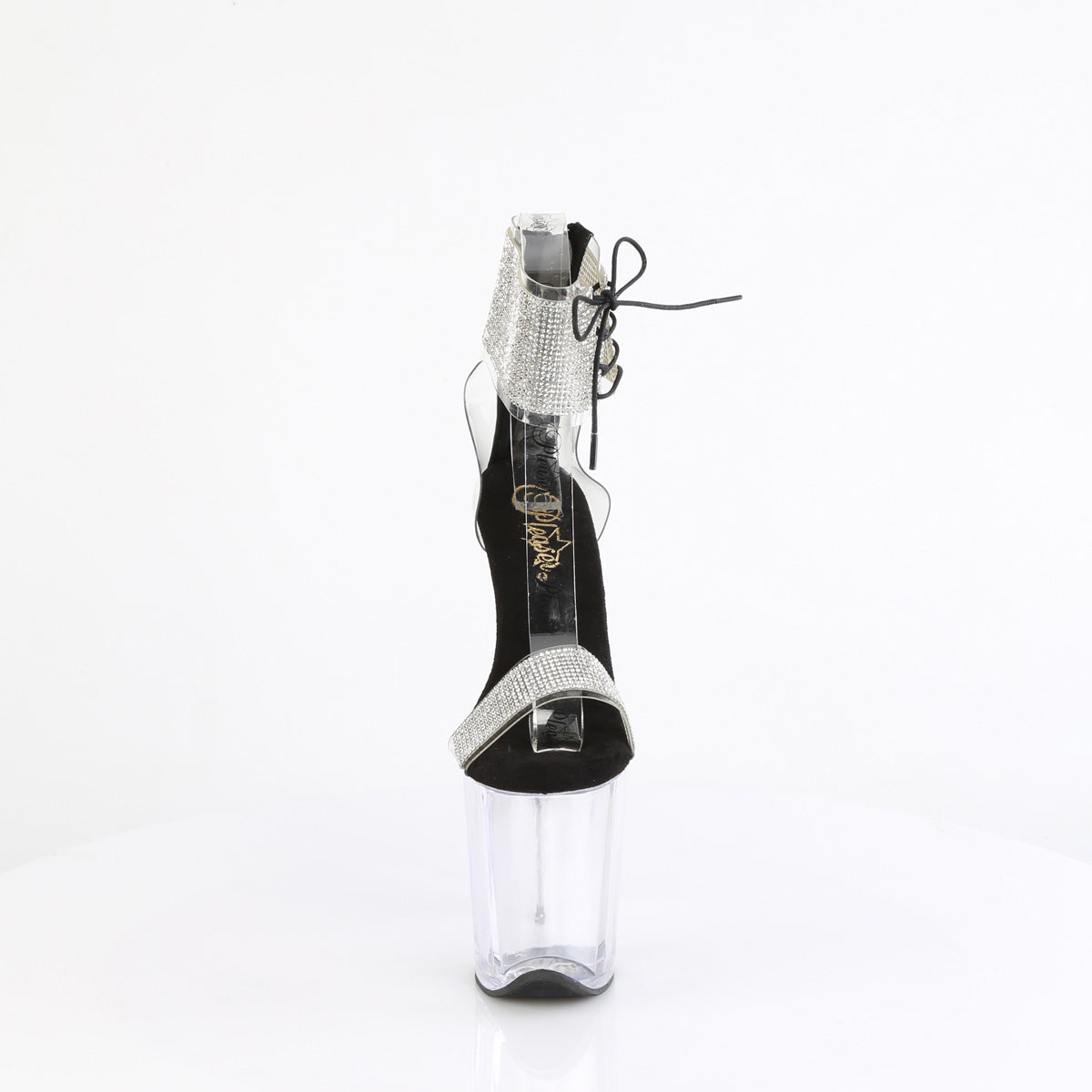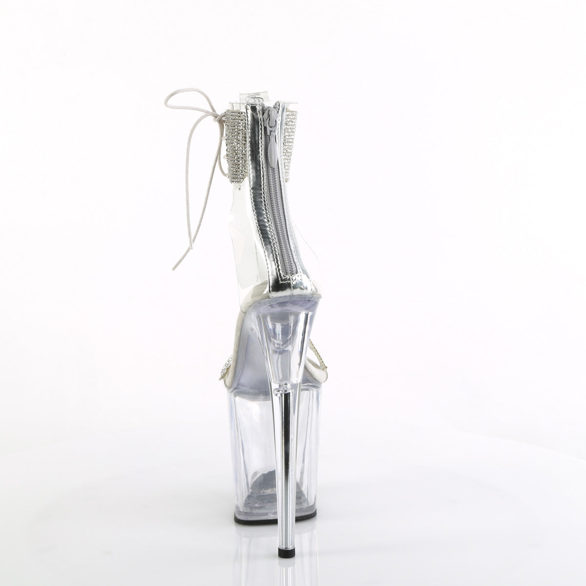 Voici une élégante sandale à talons de 8 » (200 mm), 4 » (100 mm) à plateforme à revers fermé à la cheville, qui fera sûrement tourner les têtes. Dotée d’un superbe bracelet et sangle de cheville ornés de strass, cette chaussure est complète avec son lacet latéral et sa fermeture éclair arrière. Sublimez votre collection de chaussures avec ce design époustouflant et unique.