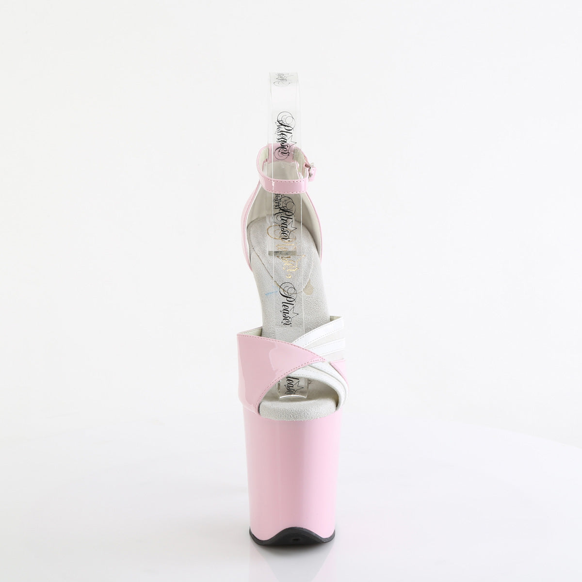 Améliorez votre jeu de mode avec ces sandales professionnelles à brides de cheville dotées d’un talon de 8 po (200 mm) et d’une plateforme de 4 po (100 mm). Le design bicolore, le bout ouvert et le dos fermé allient style et élégance, ce qui en fait un choix polyvalent pour toutes les occasions.