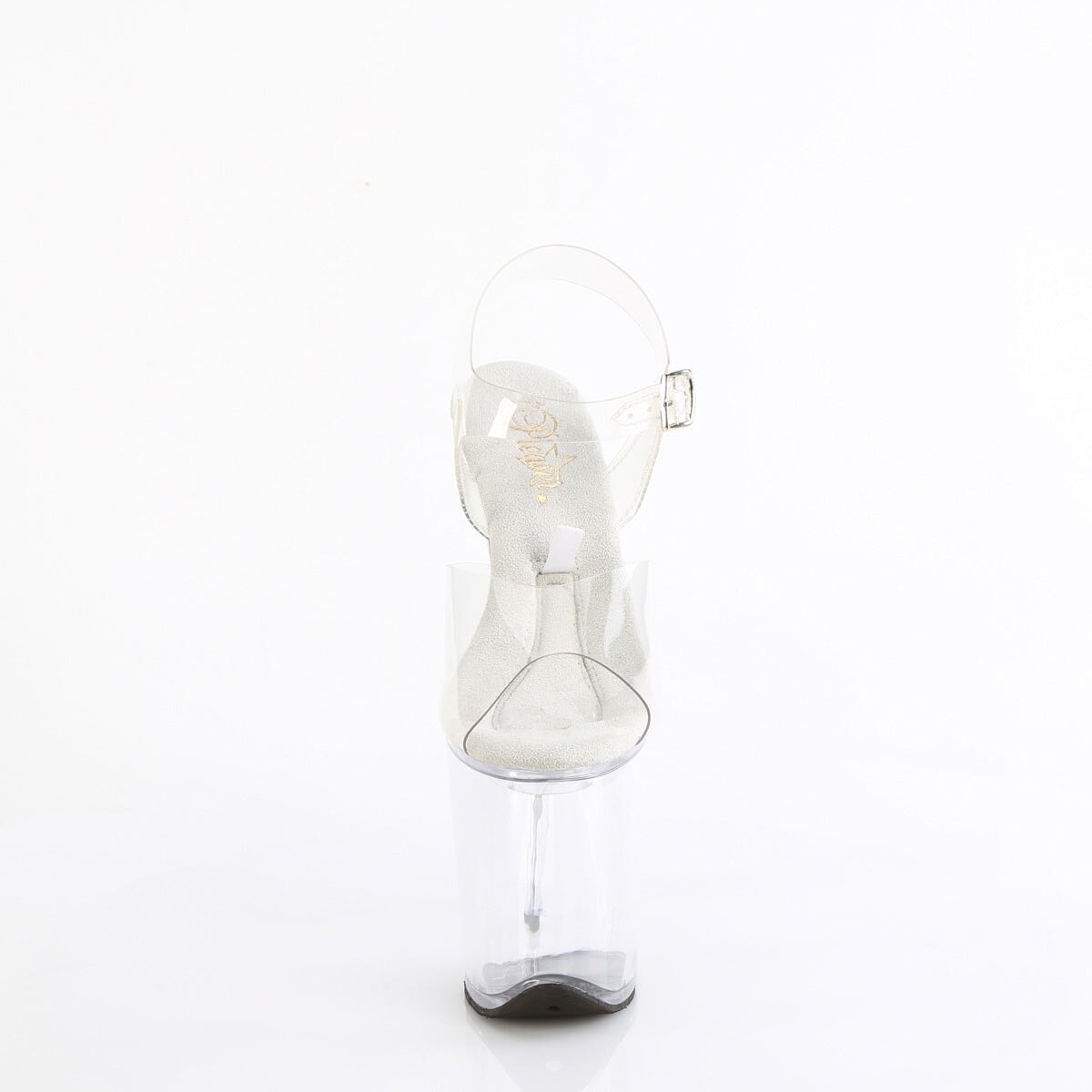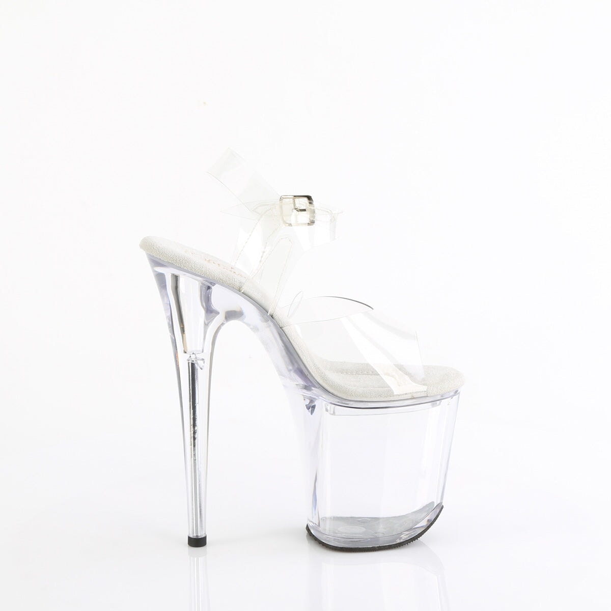 Cette sandale unique possède un talon de 8 » (200 mm) et une plateforme de 4 » (100 mm) avec une sangle à la cheville. Ce qui le distingue, c’est le compartiment de base accessible depuis la semelle intérieure, parfait pour ranger de petits objets.