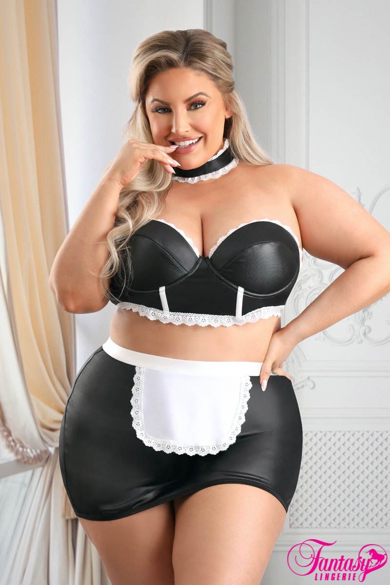 Faites la fête dans ce haut bustier bustier sans bretelles avec soutien-gorge intégré et bordure en dentelle, associé à une mini-jupe tablier ajustée mettant en valeur un dos entièrement découvert. Complétez l’ensemble avec un string assorti et un joli volant choker Pour ajouter du style.