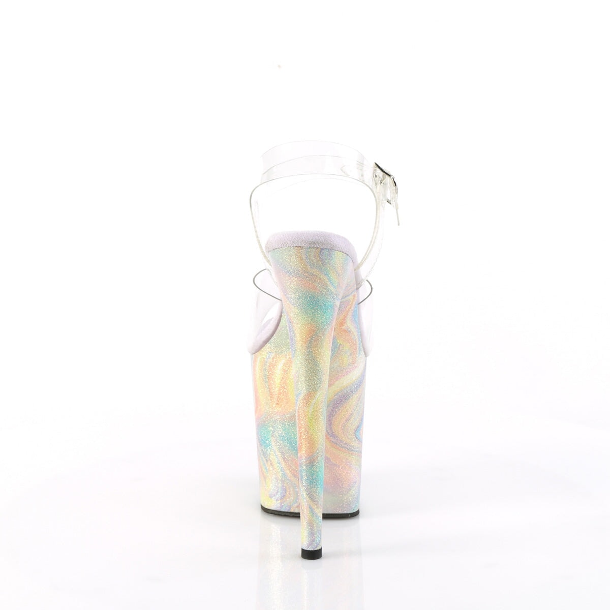 Sortez avec style avec ces magnifiques sandales à bretelles de cheville. Avec un talon imposant de 8 pouces et une plateforme de 4 pouces, ces chaussures feront assurément une déclaration. Le design simulé de formations rocheuses colorées et scintillantes au bas de la plateforme ajoute une touche unique d’art au design, les rendant parfaits pour toute personne à l’avant-garde souhaitant se démarquer de la foule.