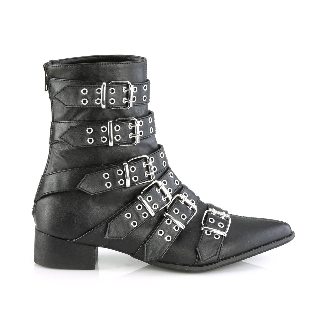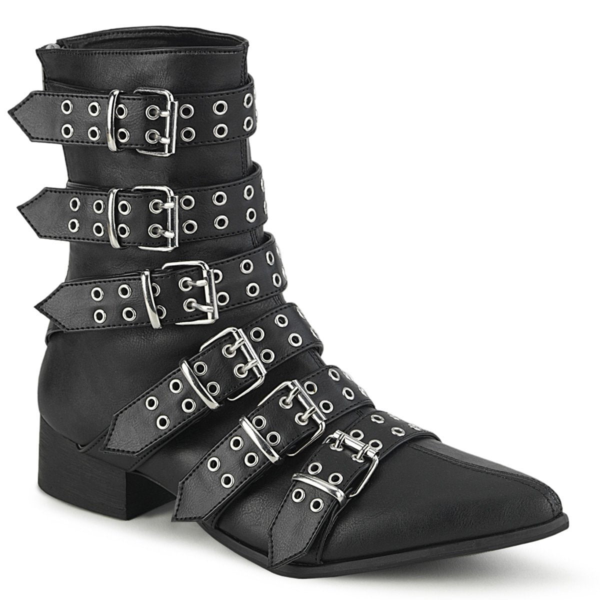 Bottes envoûtantes à talon pointu Winklepicker de 1 1 1/2" (38 mm) à talon pointu Winklepicker, avec plusieurs brides à double œillet avec fermeture éclair arrière.