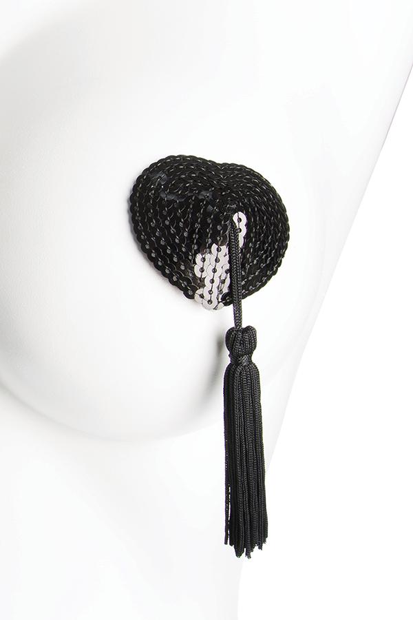 Faites un spectacle avec ces pasties sexy en forme de cœur à sequins avec des glands! Avec un support autoadhésif réutilisable.