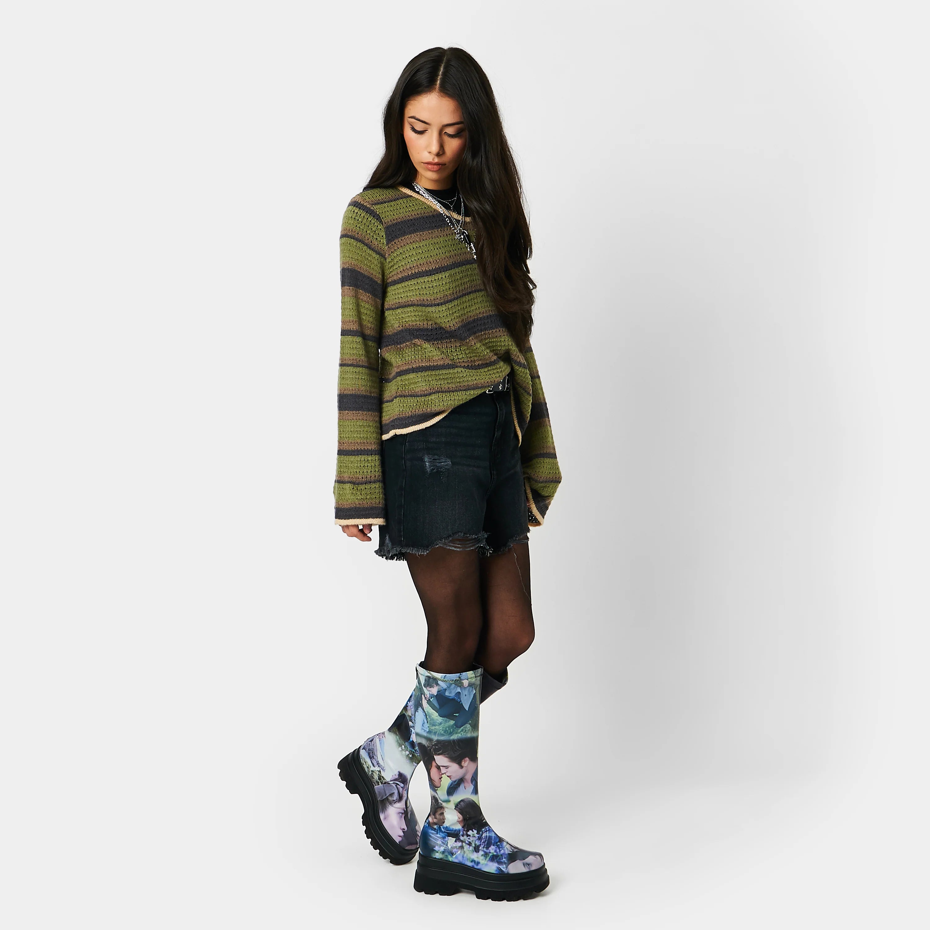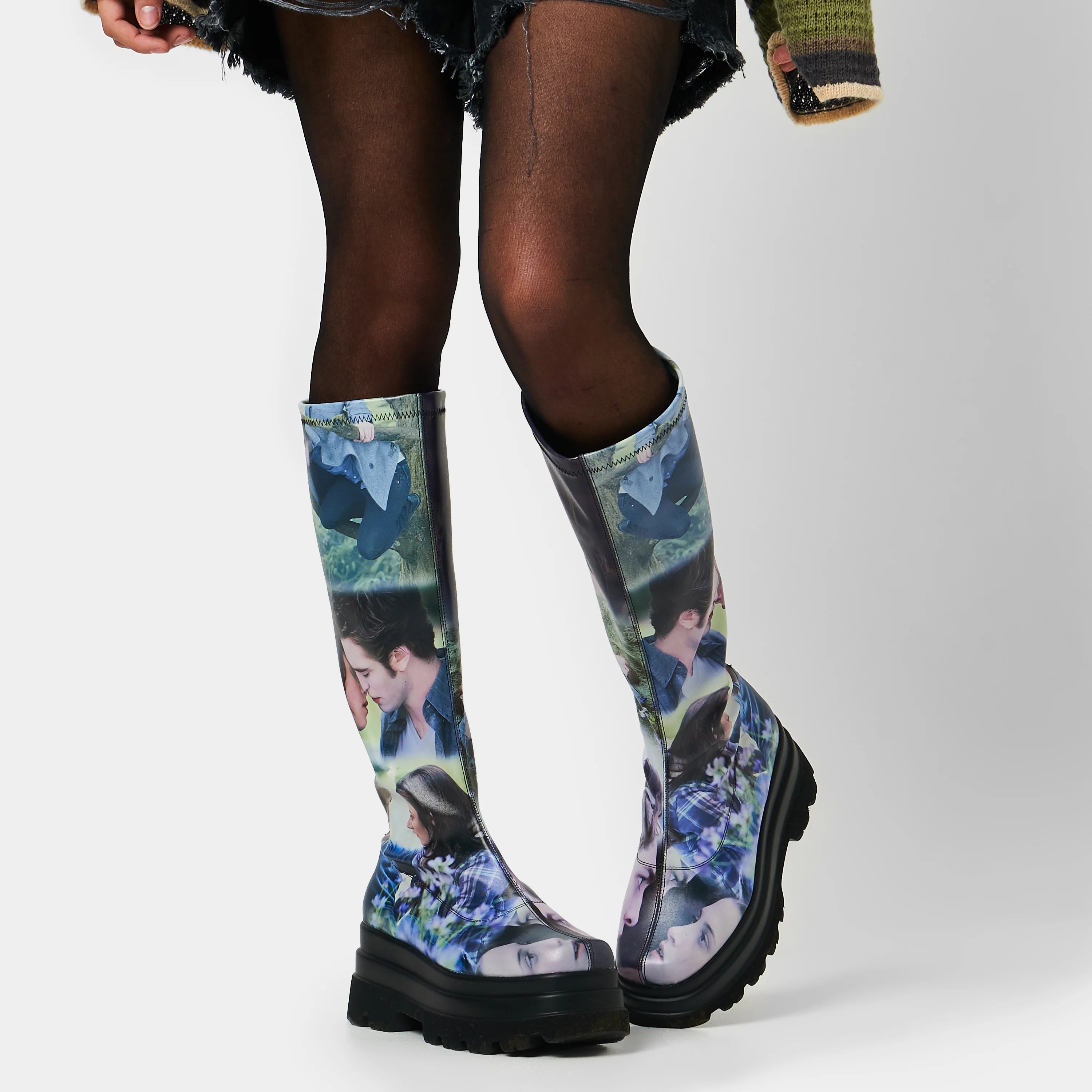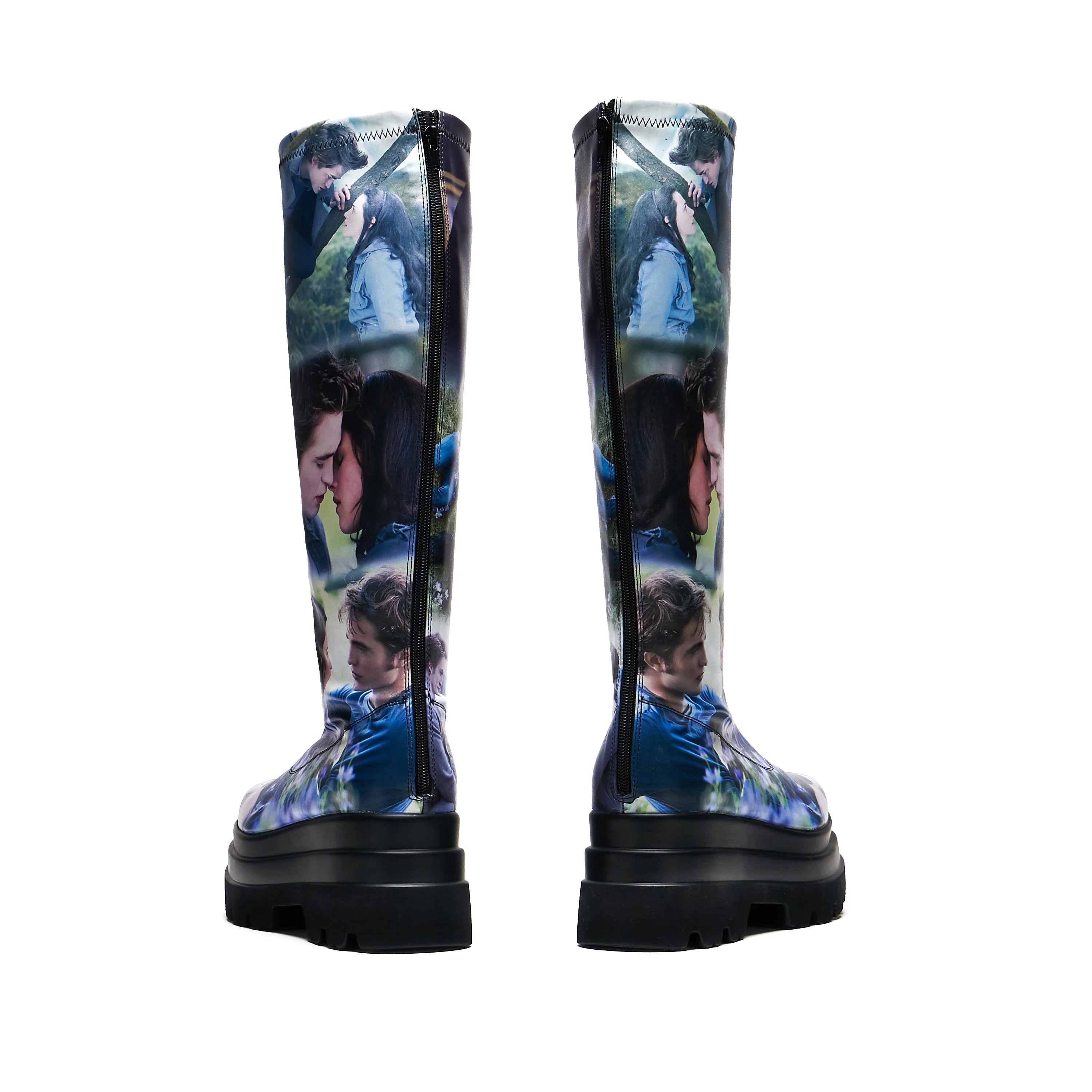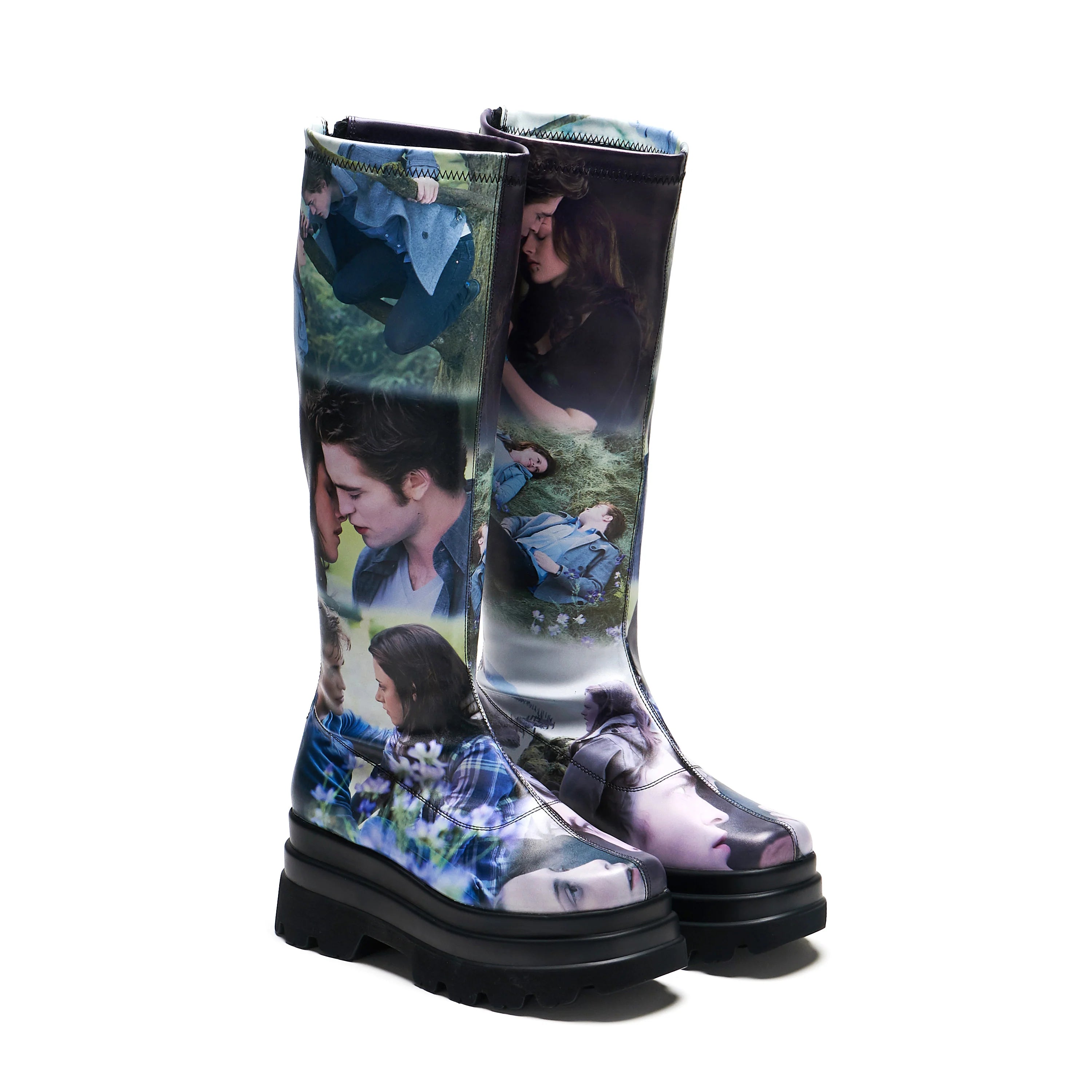 2008s favourite couple. This boot is named after the ship name for Bella x Edward. A collage of iconic images of the end game couple, in some of the most recognisable Twilight locations, like the forest, flower field and by the lake. Theres even an image of the couple gazing at each other placed on the toe. All set on a fitted boot upper on our Trident platform. A perfect tribute to one the worlds most famous fictional couples. Bedward forever.