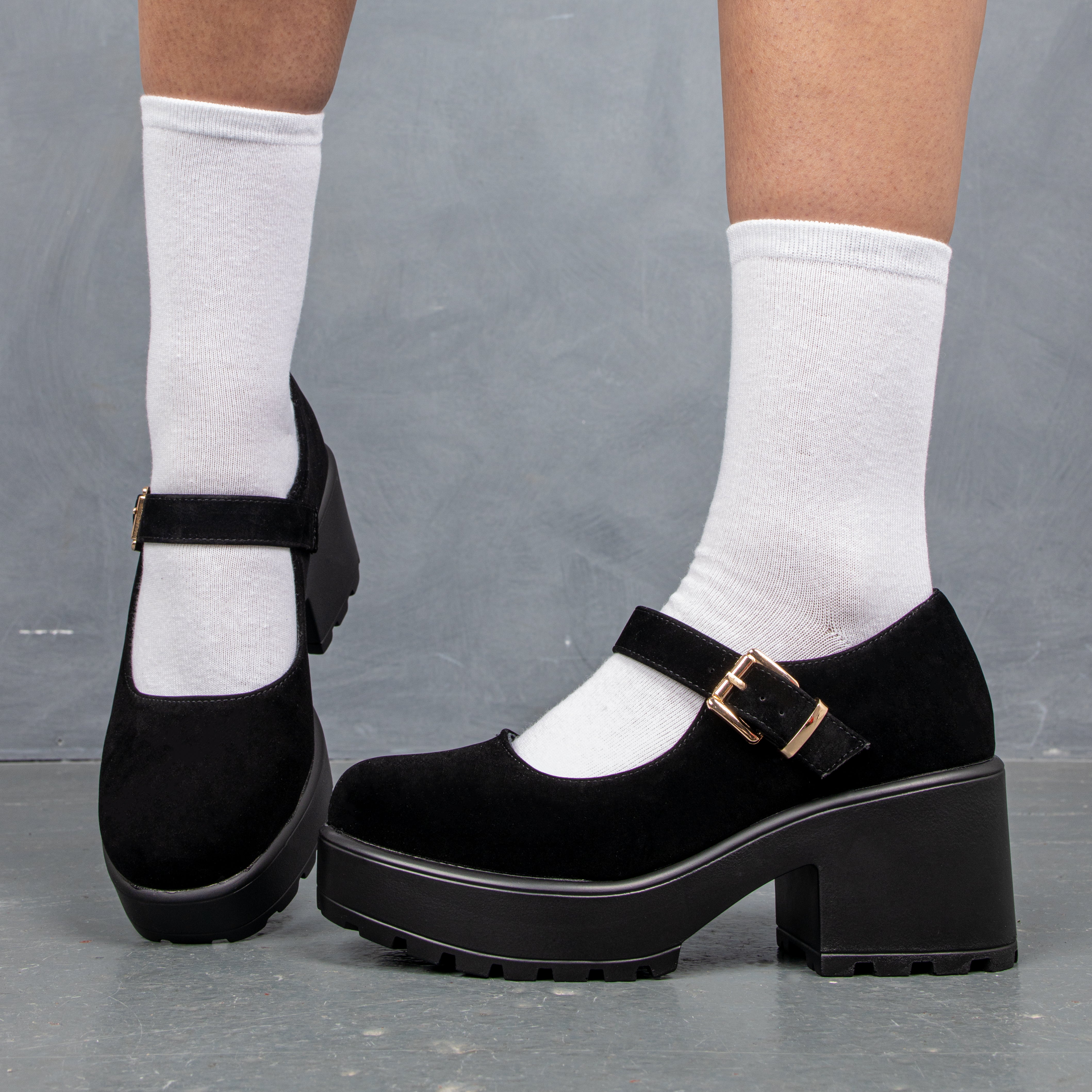 La grosse plateforme de 3 po est robuste et vous donne juste un peu de hauteur sans ajuster votre façon de marcher! La finition en suède de ces Mary Janes les rend incroyablement polyvalentes, qu’il s’agisse d’un look classique de la rentrée scolaire ou d’un look plus chic, ces chaussures servent de toile ultime pour l’expression de soi, s’adaptant parfaitement à votre style unique.