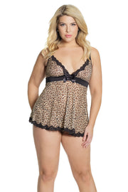 Libérez votre côté sauvage avec ce set babydoll audacieux, avec un imprimé animalier sur tout, des bonnets triangles doux avec bordure en dentelle, des nœuds en satin et des bretelles fines ajustables. Finition avec une taille empire noire unie, un corsage flirty fluide, et un ourlet bordé de dentelle pour une touche parfaite de taquinerie.