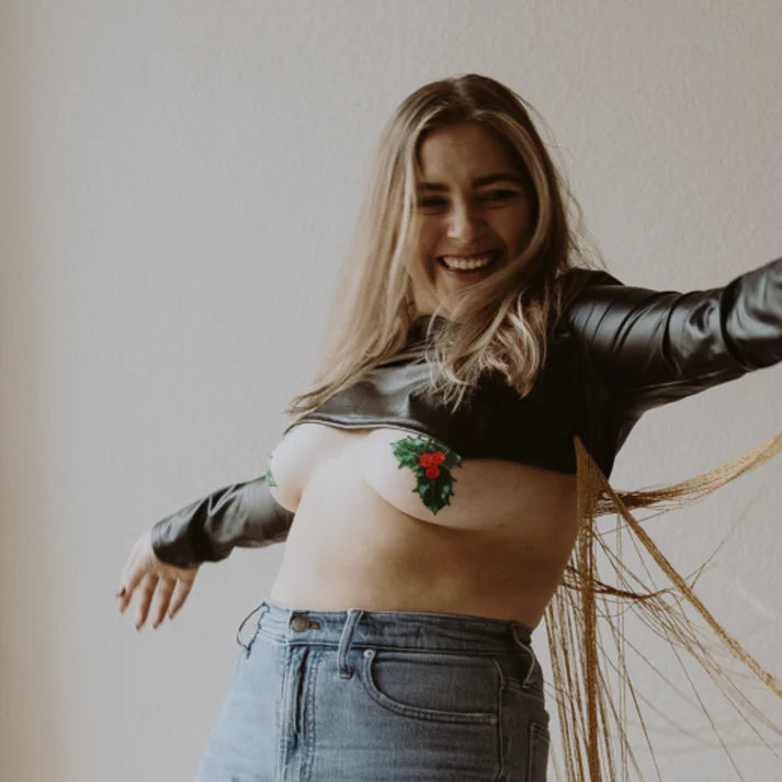 Les pâtés de tétons Christmas Winter Holly with Red Berries de Pastease® sont fabriqués à la main aux États-Unis avec un matériau moulant qui s’adapte parfaitement aux courbes et résiste aux plis sur les mamelons durcis.