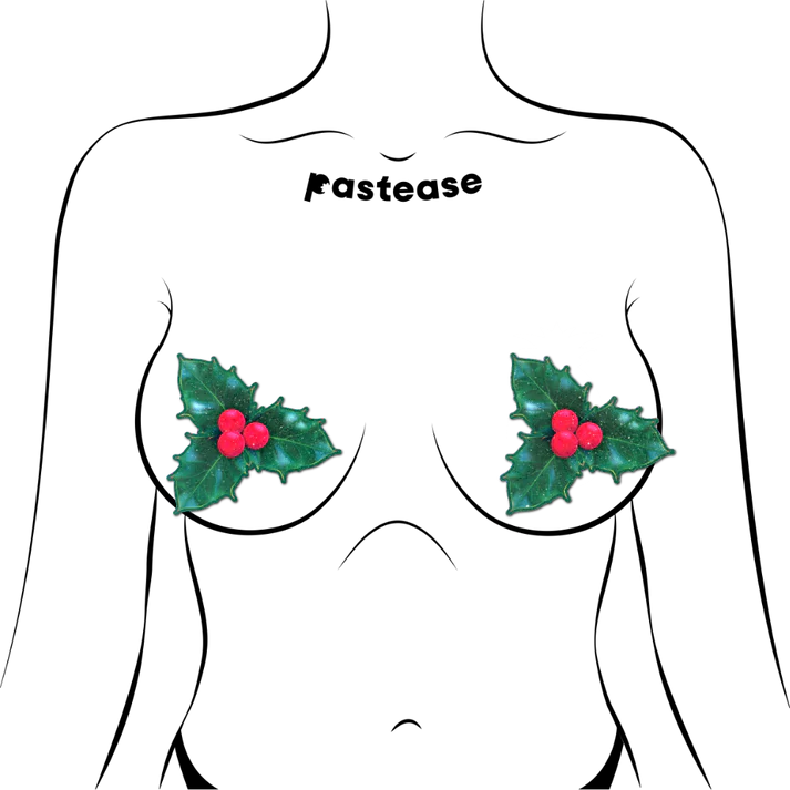 Christmas Winter Holly with Red Berries Nipple Pasties