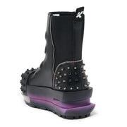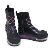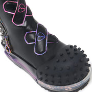 Designed for the unapologetically bold, these boots are laced with broken heart details, studded panels, and a cosmic platform sole filled with colourful beads that rattle with every stomp. An iridescent zip, rubber toe guard, and contrast stitching seal the deal.