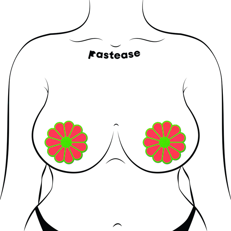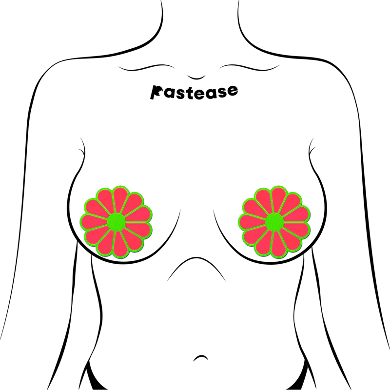Daisy: Neon Green & Glow in the Dark Neon Pink Petal Pasties Nipple Covers