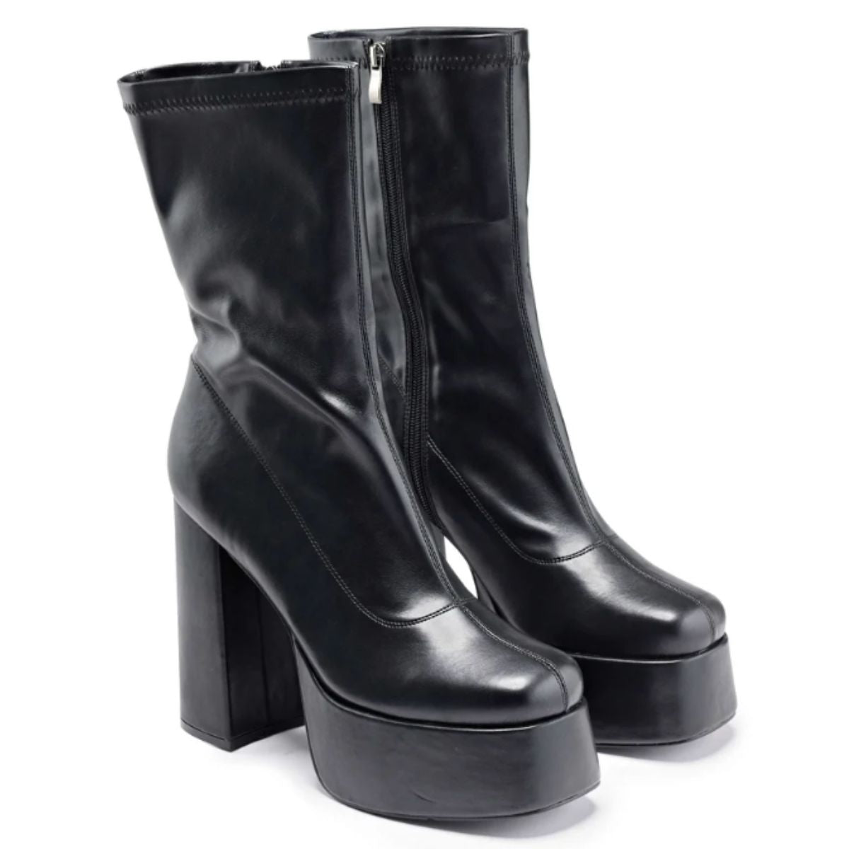 Les bottes à talons plateformes noires Delano pour hommes sont bien ajustées à la taille. Ces commentaires sont basés sur des tests effectués sur différents types de personnes.