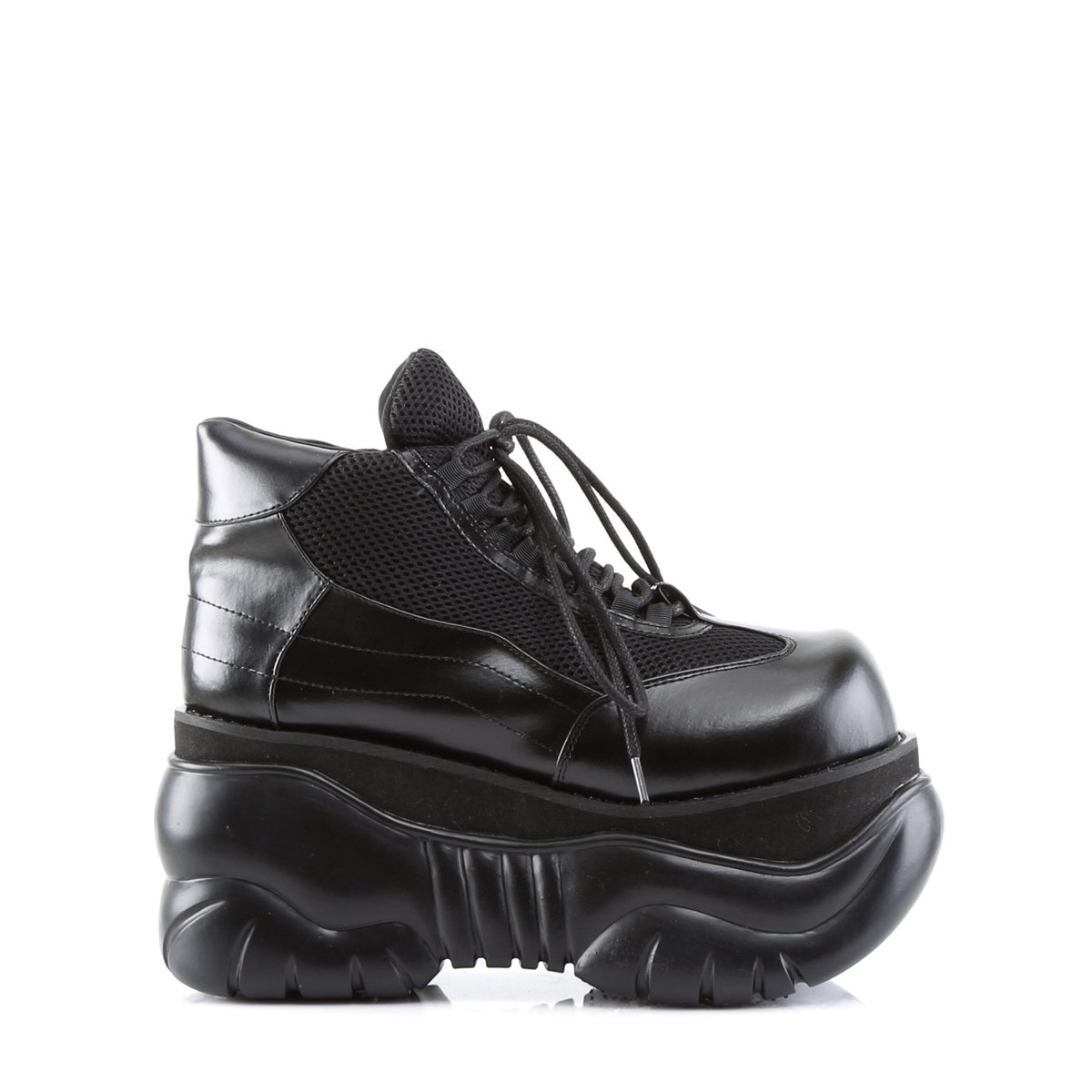Chaussures de baskets à plateforme à la mode dotées d’une plateforme haute, d’un bout rond et de lacets. Espadrilles à plateforme à lacets avec tige en nylon et cuir végétal et semelle plateforme de 4 po. Soyez percutant dans votre plus beau costume gothique ou montez au rallye de camions monstres dans ce lacet en cuir outrageusement haute couture. Où que vous atterrissez, vous êtes sûr de faire bouger les choses!