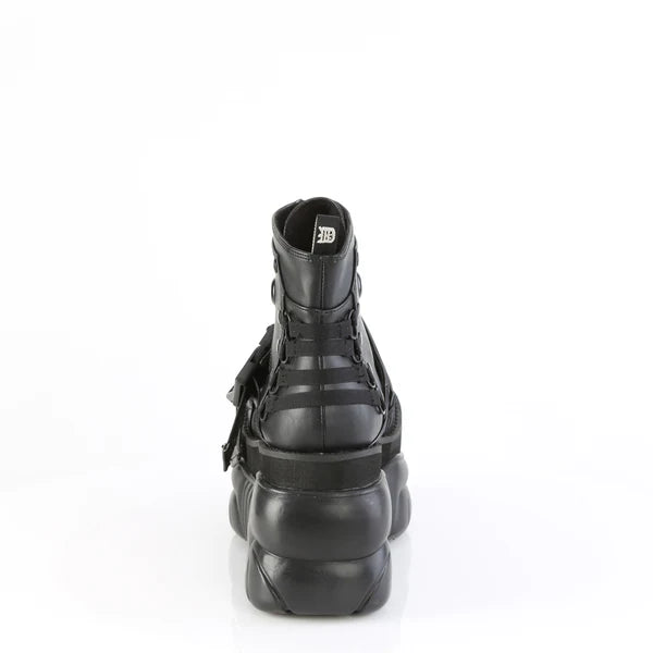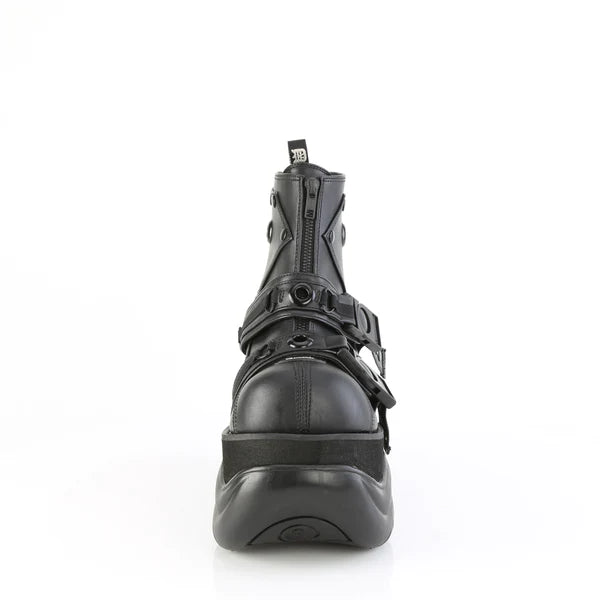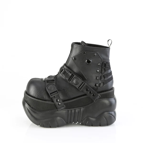 Rehaussez votre style avec ces bottines à plateforme de 3 pouces. Ornées de brides à boucle en plastique à œillets rapides et de détails de style corset sur le talon, elles offrent une touche unique et à la mode. La fermeture à glissière à l’avant assure à la fois style et commodité.