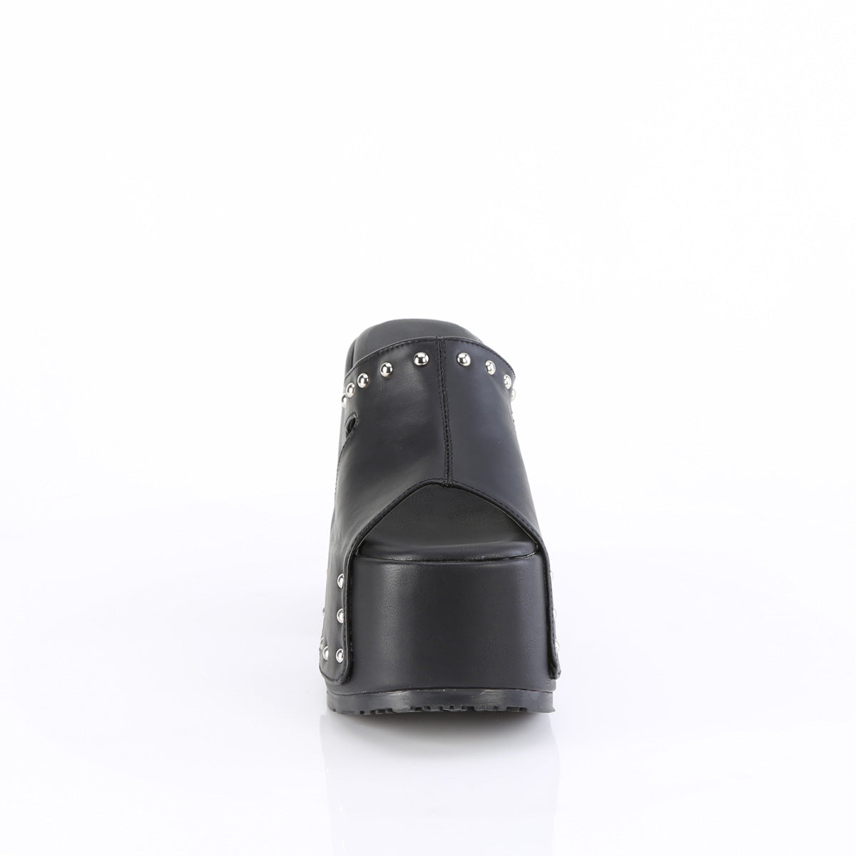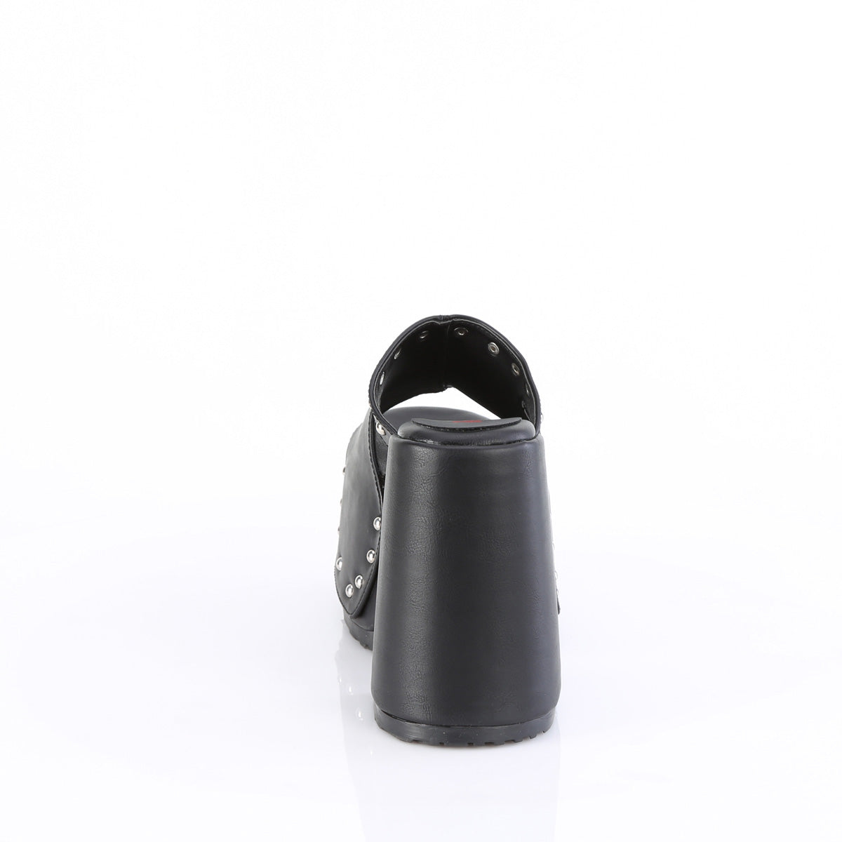 La claquette plateforme à talon épais de 5 po (12,7 cm) et 3 po (7,6 cm) est ornée de clous ronds plaqués chrome argenté élégants et élégants. Ce design ne manquera pas de rehausser n’importe quelle tenue avec son avantage supplémentaire et ses caractéristiques audacieuses. Parfait pour ceux qui veulent faire une déclaration sans compromettre le confort.