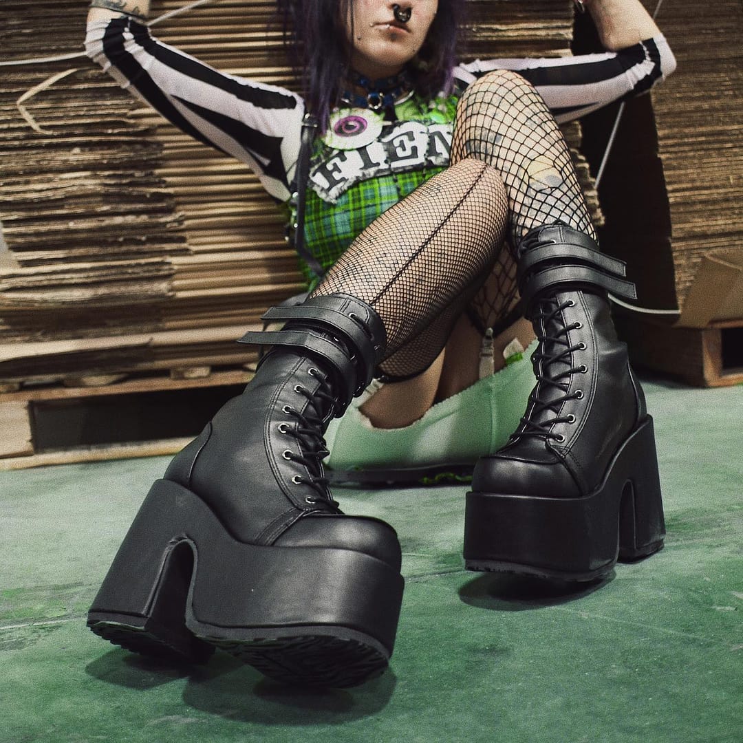 Tenez-vous droit dans ces bottes à talon épais de 5" (127 mm) et à plateforme de 3 po (75 mm) à mi-mollet dotées de doubles sangles à crochet et d’une fermeture à glissière à l’arrière pour un port facile et un emplacement.