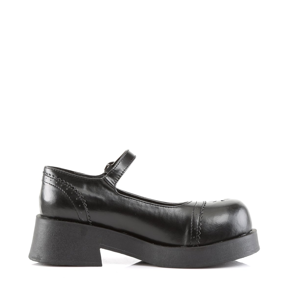 Une chaussure plate classique à de nouveaux sommets, le bout surdimensionné emmène cette chaussure dans un nouveau territoire impertinent. Le rosage ironique sert à rappeler que ce n’est pas une chaussure habillée ordinaire. Attrayantes chaussures Mary Jane dotées d’un bout rond, d’une sangle réglable et d’un talon mi-élevé.