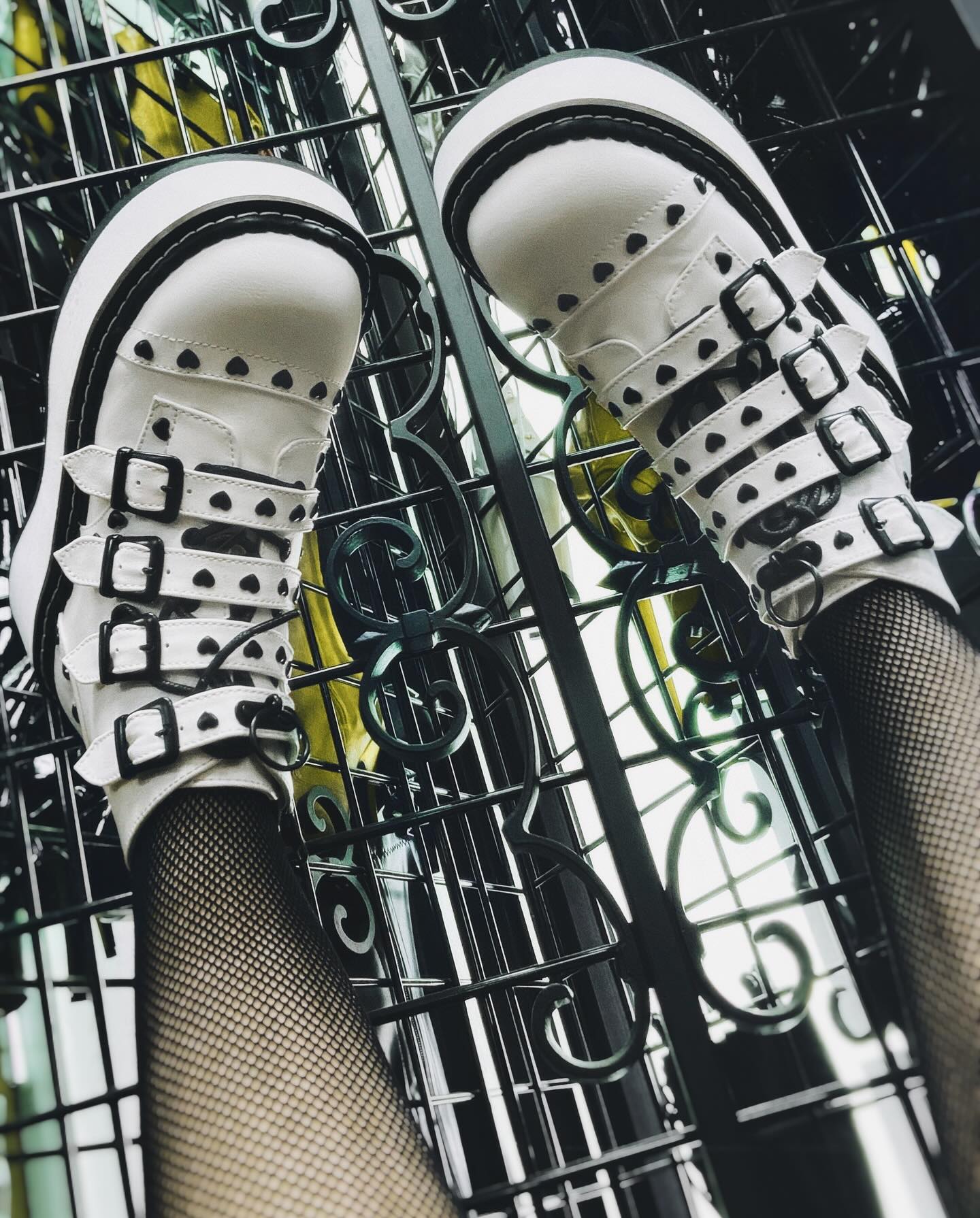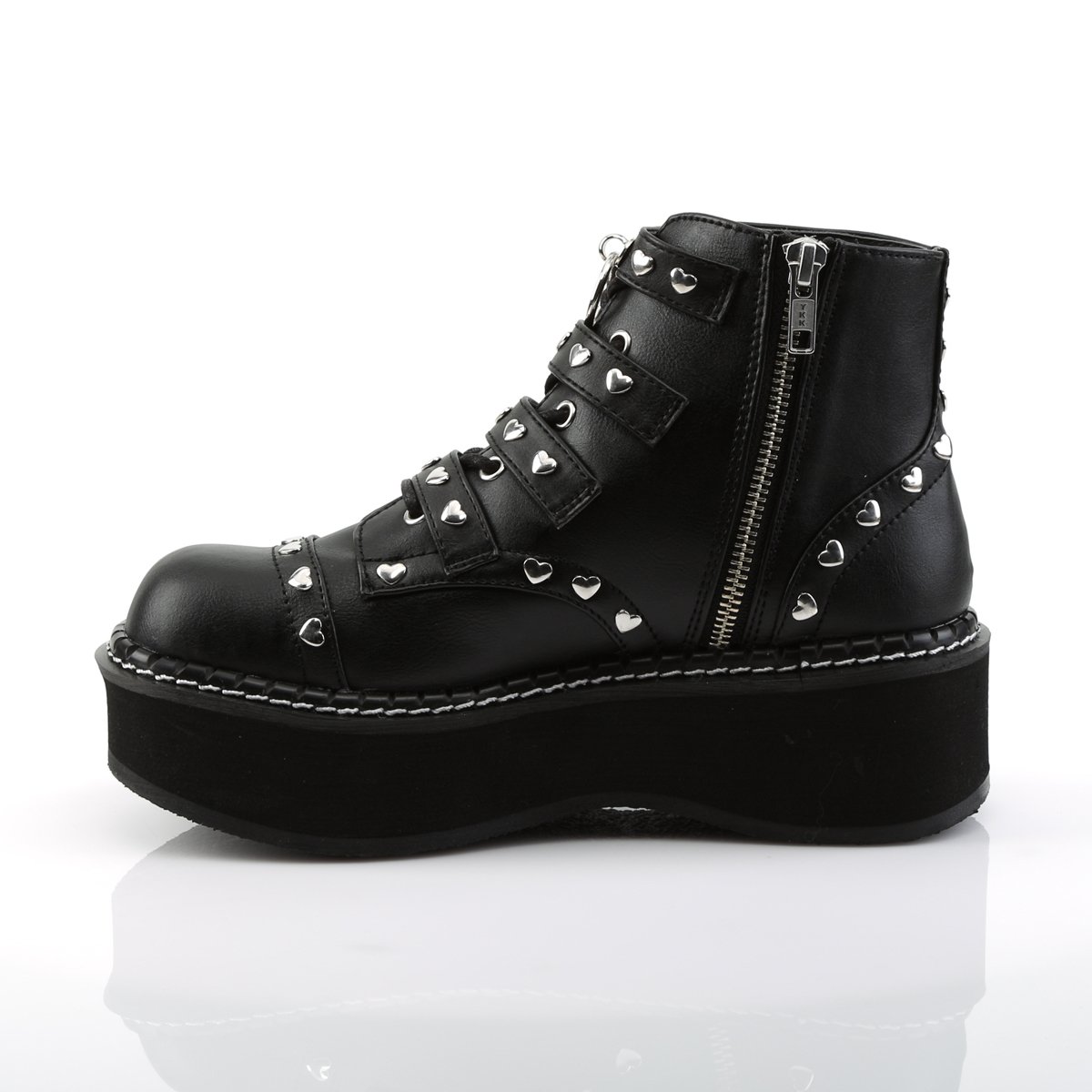 Tiens-toi droit dans ces chaudes Demonia 2" à plateforme à lacets à lacets, avec bottines à sangles à boucle. Cette botte est munie d’un anneau torique sur la sangle supérieure et d’un détail en forme de cœur. Il y a une fermeture éclair intérieure pour un port facile à porter.