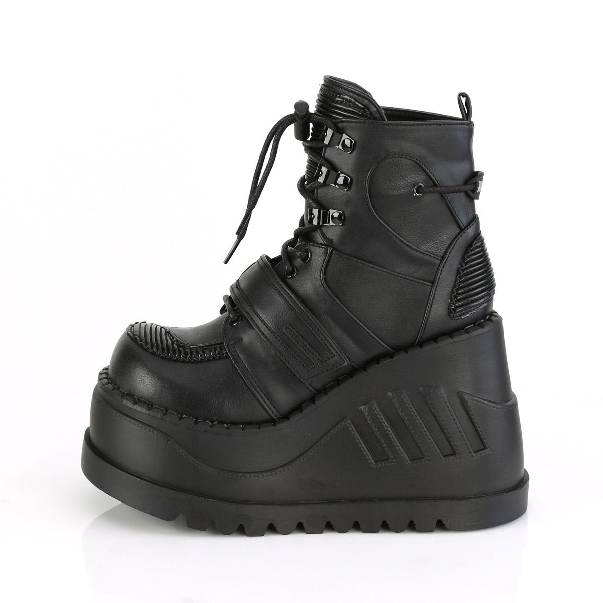 Bottines à dentelles à lacets à plateforme compensée de 4 3/4 po (121 mm) avec sangle auto-agrippante sur l’empeigne, panneaux matelassés à l’avant, languette et arrière et bouchon de lacet.