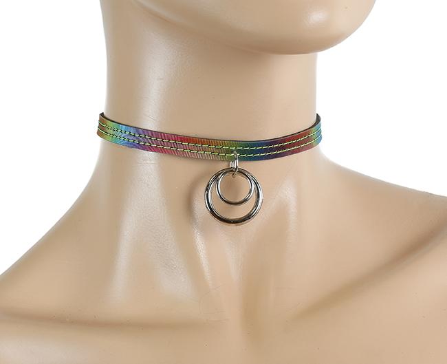 Plein de couleurs mais design simple, double anneau 1/4" choker. Fabriqué avec des matériaux de haute qualité. C’est ça choker possède une attache à boucle robuste et est ajustable de 14 » à 17 ». Conçu pour ajouter un peu plus d’originalité à vos tenues gothiques, punk, deathrock, métal, cyber, industrielles, rockabilly, lolita, vampires, anime ou fétiches.