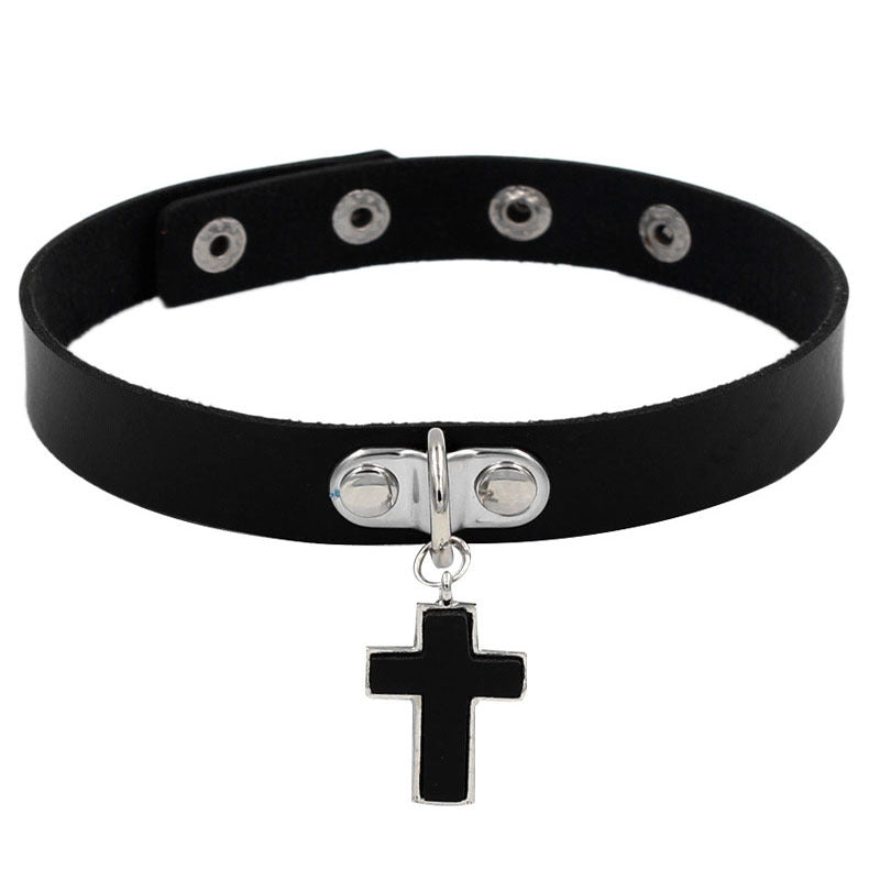 Fabriqué en cuir PU noir lisse, celui-ci choker Présente un charme en croix noire frappant, ajoutant une touche audacieuse mais élégante à chaque look. Ajustable pour ajuster des manches de 32 cm à 38 cm