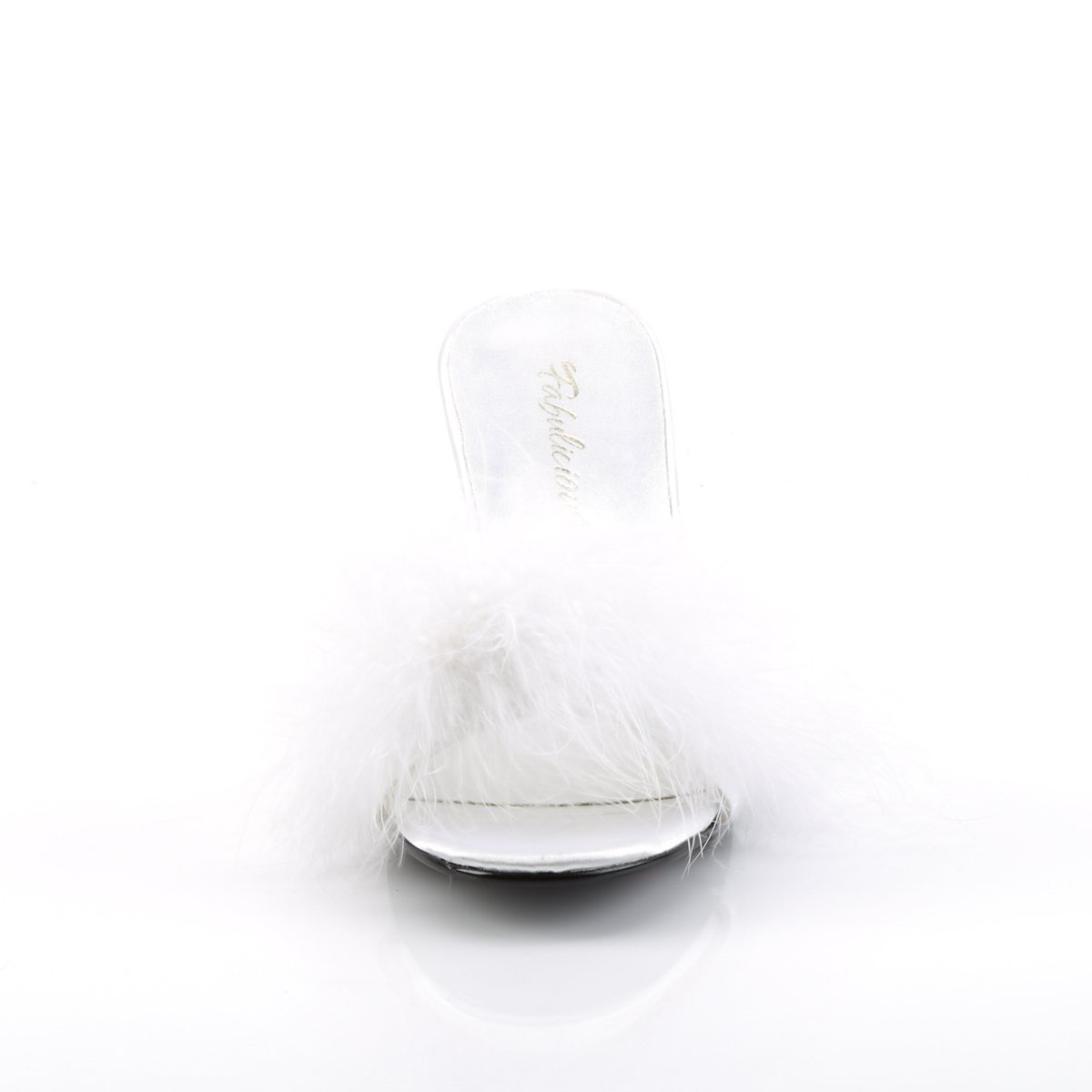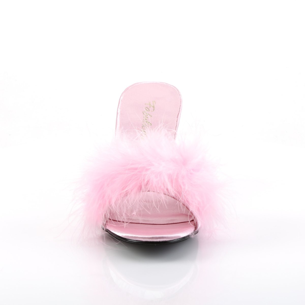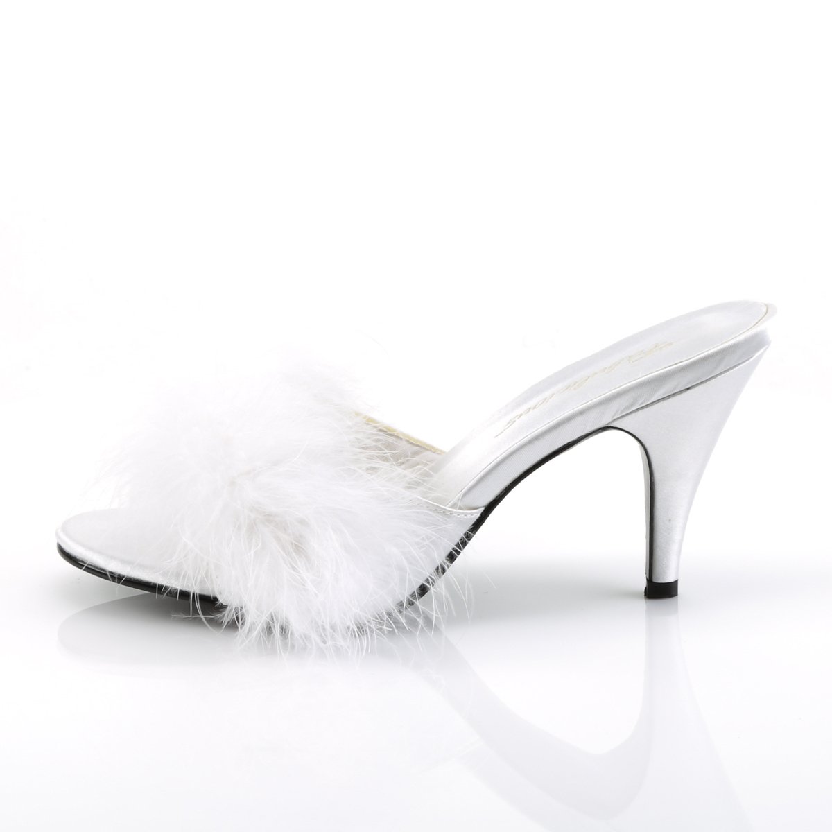 Une pantoufle marabou classique. Semelle simple, talon bas. Tige textile dans un style sandale habillée avec un bout rond et ouvert. Détails doux de plumes au niveau du vampire. Doublure lisse, semelle intérieure amortie. Semelle extérieure d’adhérence.