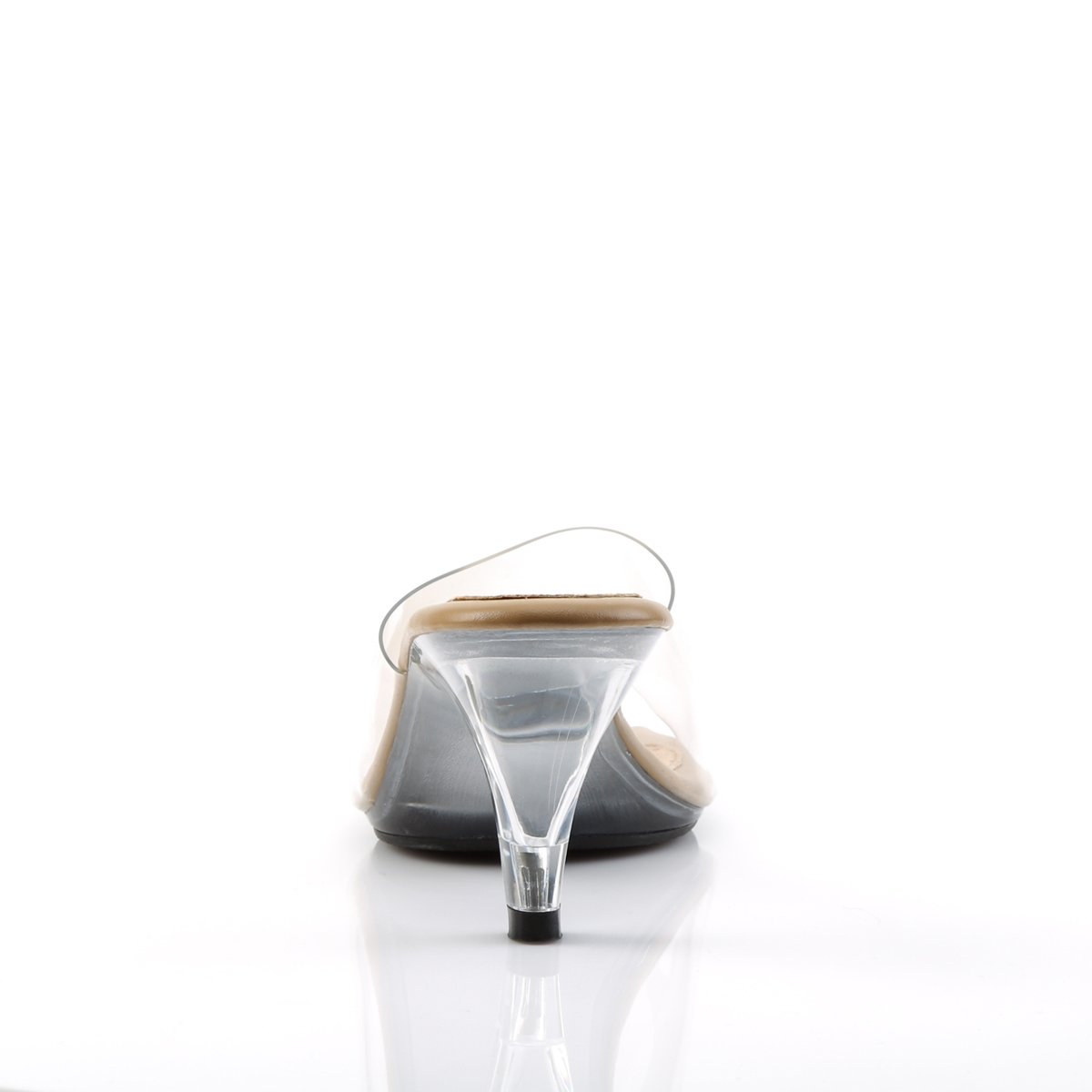 Fabuleuses mules avec dessus transparent qui laisse le pied exposé, bout ouvert avec un design de coupe carrée et semelle rembourrée pour plus de confort. Les délicats talons hauts de 3 pouces (7,5 cm) sont fabriqués dans un matériau transparent pour un look uniforme et une apparence chic. Confortables, ces mules sont un incontournable pour toute fashionista!