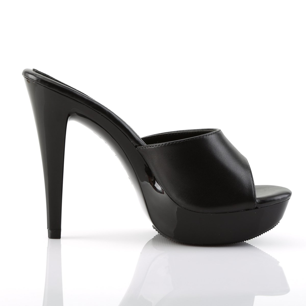 Glissade classique à plateau à plateau ouvert en noir avec une seule sangle supérieure avec des coupes rondes sur les deux bords, un rembourrage noir assorti et des talons aiguilles noirs de 5 pouces (12,5 cm) de haut. Conçues avec un grand souci du détail, ces chaussures sont le meilleur exemple d’élégance intemporelle et de sex-appeal.