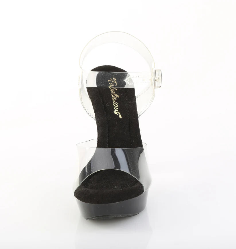 Pleaser's Fabulicious Cocktail pole Sandales de danse avec tige transparente, semelle intérieure rembourrée, attache à la cheville, talons aiguilles de 5 » et plateformes de 1 ».