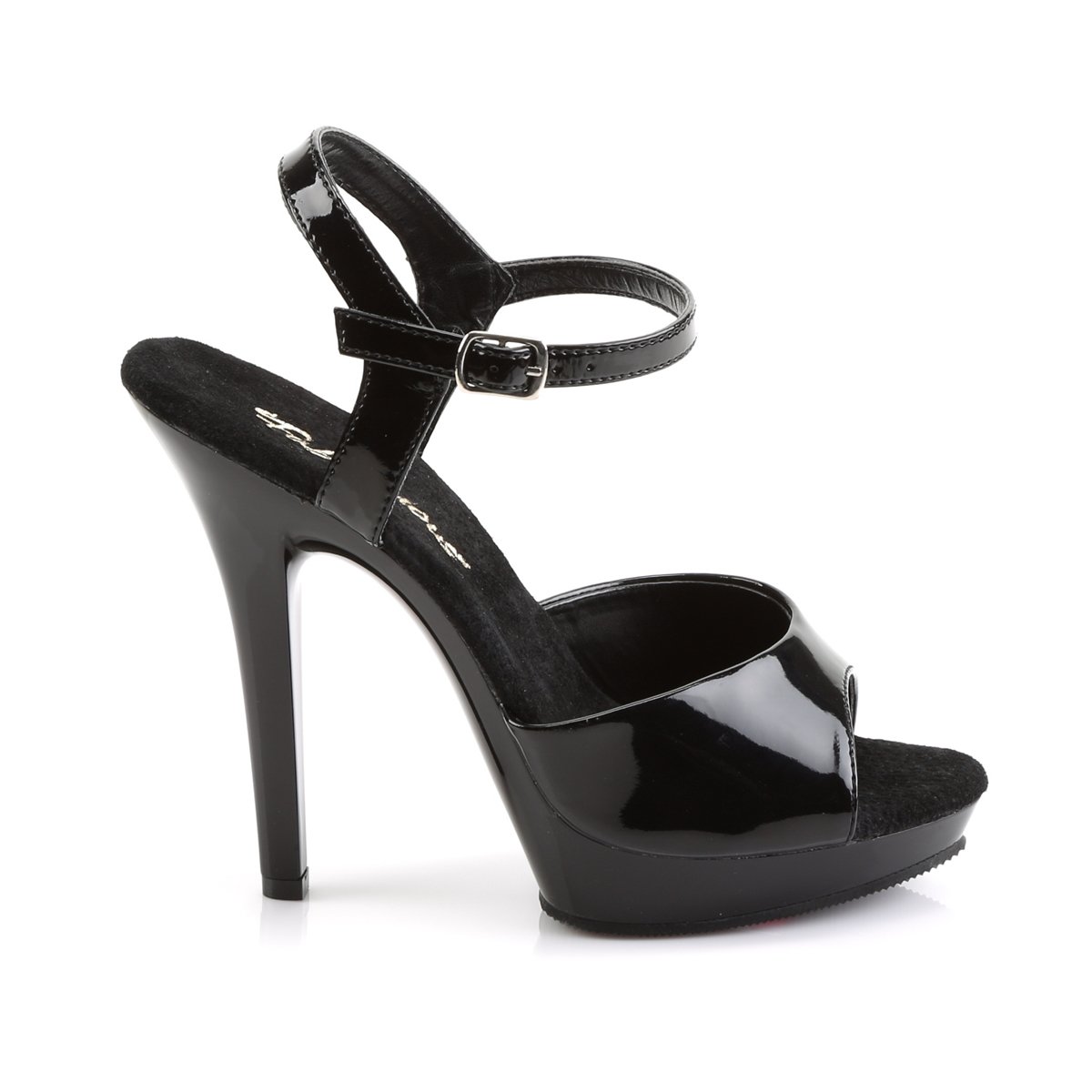 Sandales vernies chics avec une seule lanière à orteils, côtés plus larges et milieu fin, lanière à la cheville avec fermeture latérale et deux sangles de soutien sur les côtés. L’amorti doux contribue, avec la plateforme avant de 0,75 pouce (2 cm), à créer une sensation confortable pour les pieds, tandis que les talons hauts de 5 pouces (12,5 cm) assortis ajoutent cette touche provocante pour un look sexy sans aucun sacrifice.