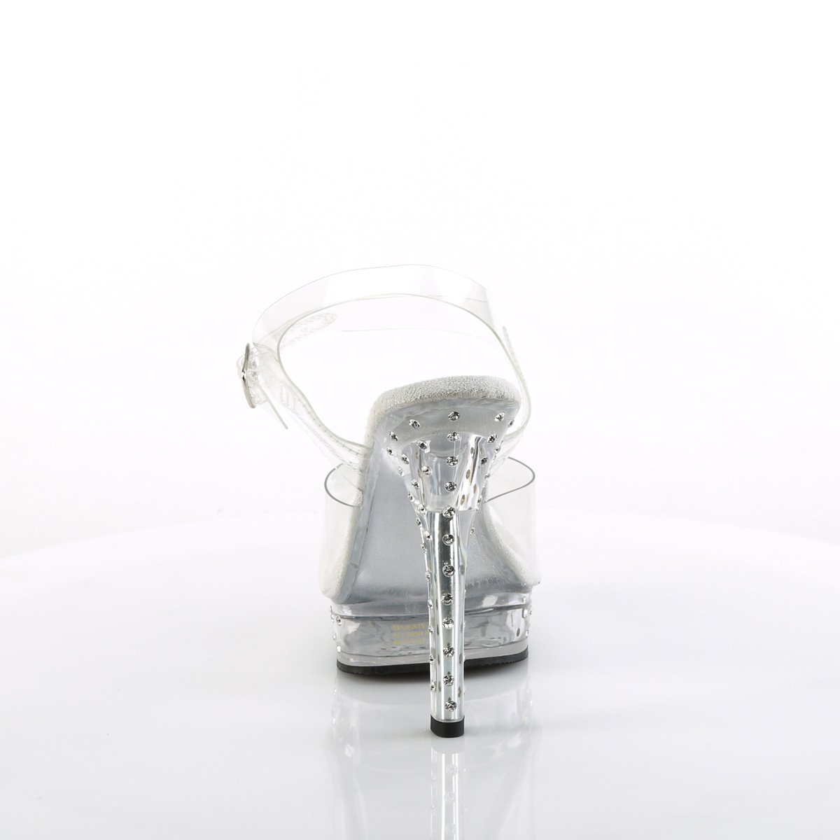 Magnifique sandale à bride de cheville confortable de 5 » (132 mm) à talon et 7/8 » (25 mm) avec des strass cloutés sur le talon et le bas de la plateforme.