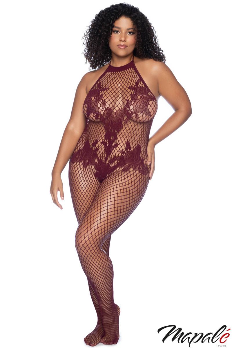 Bassine résille avec dentelle fleurie sur le devant, col haut à col linotte et entrejambe ouverte. (Corde de sol non incluse)
