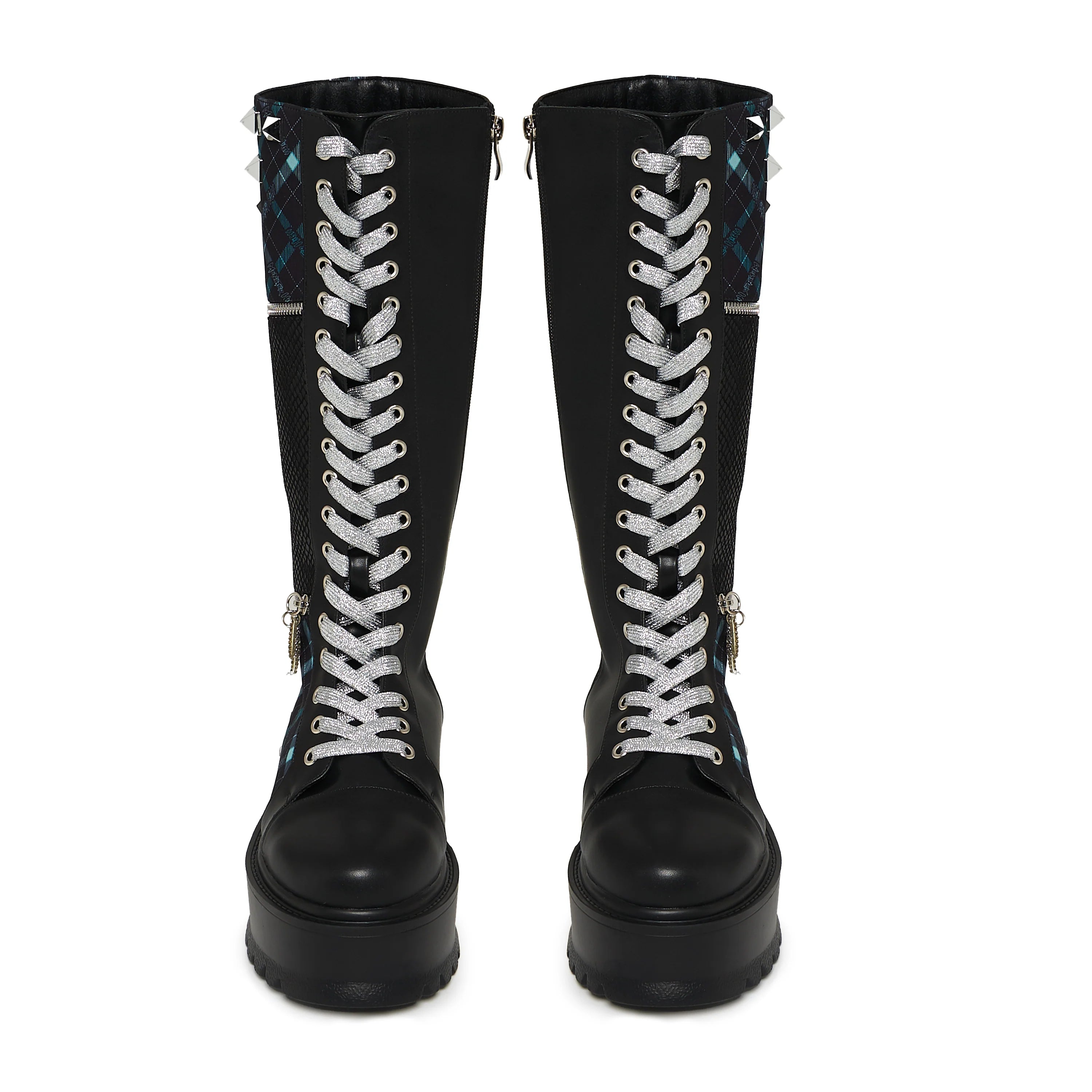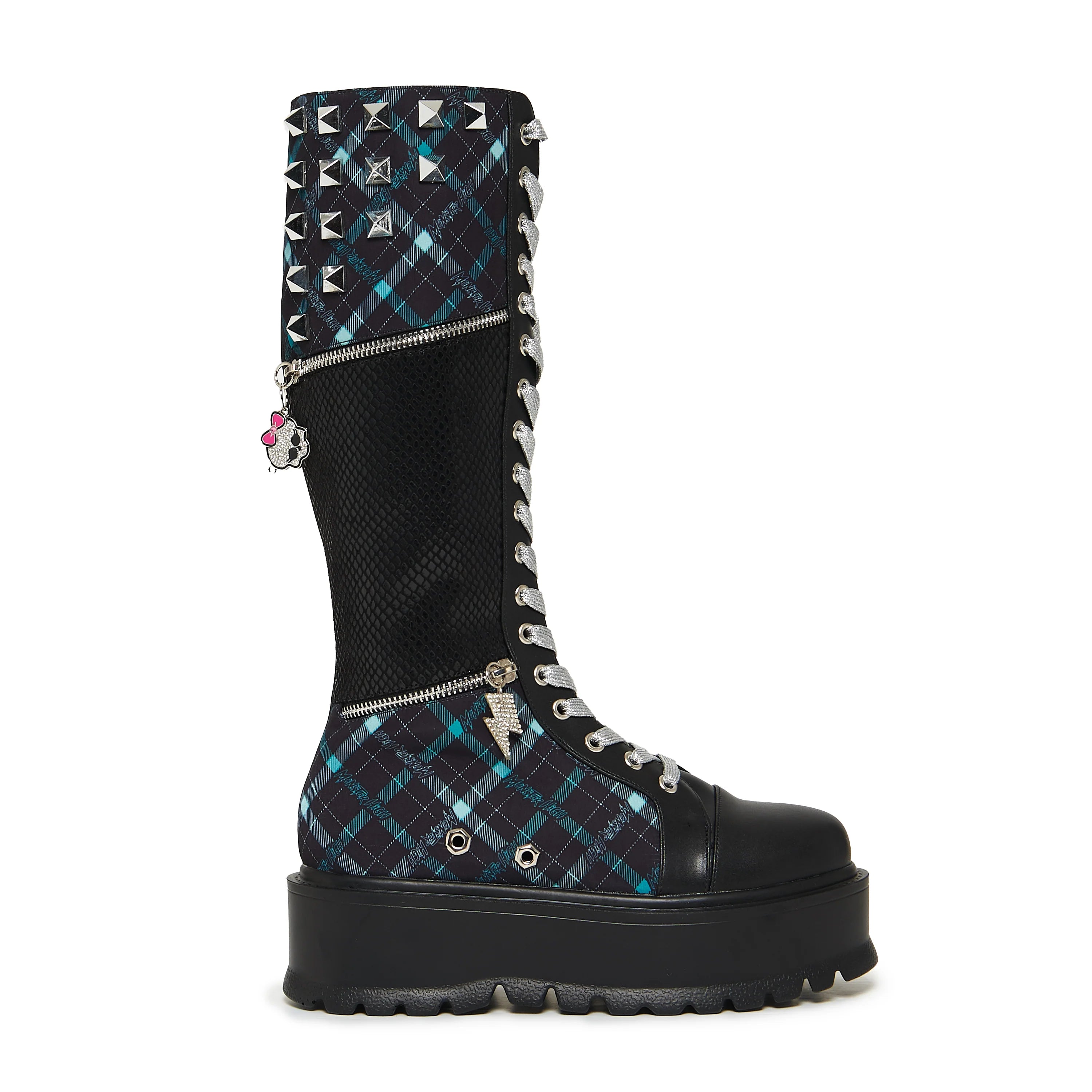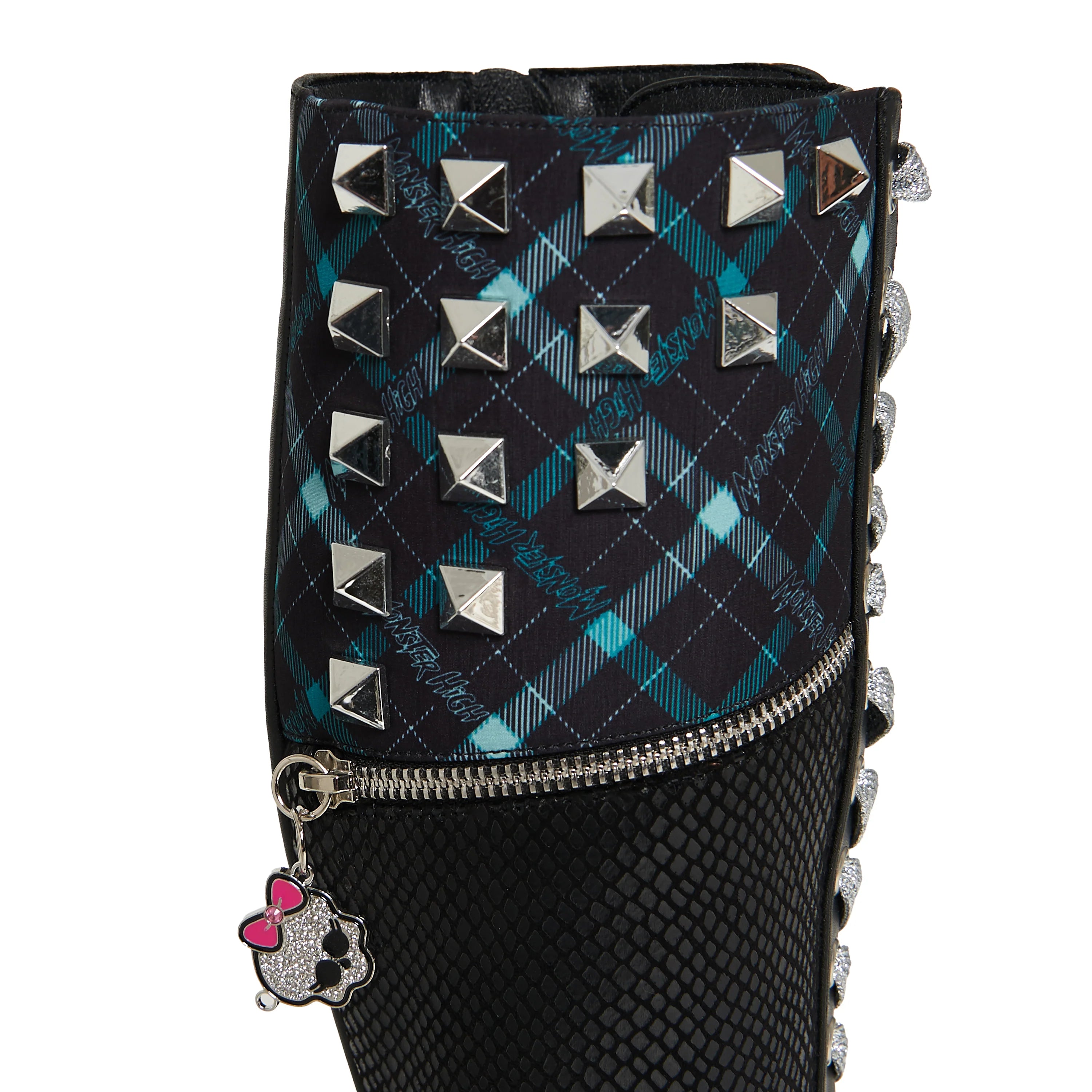 Carreaux audacieux, détails cousus et une touche d’esprit Monster High. Ces plateformes montantes sont conçues dans le tartan vert emblématique de Frankie, bordées d’accents argentés et d’un éclat de matériel éclair. Des détails ornés apportent leur étincelle de rébellion, tandis que le tartan est imprimé avec le nom Monster High, faisant de chaque pas un hommage à leur école et à leur meute. Parfait pour se charger d’une confiance électrisante, garder des secrets en sécurité et foncer tête première dans l’aventure.