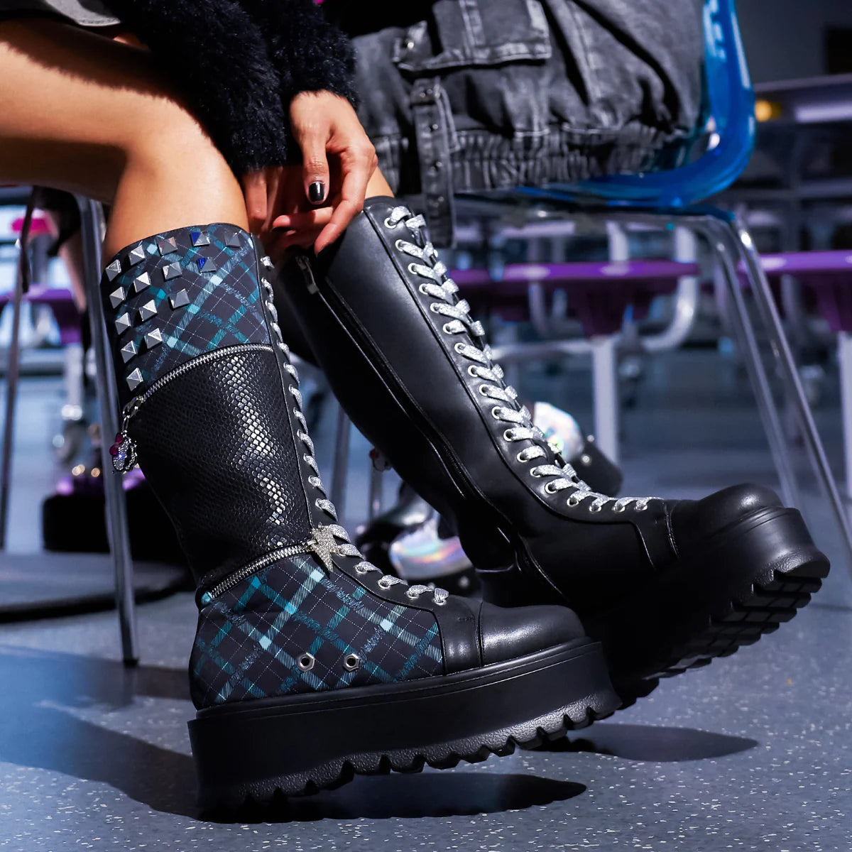 - Les bottes à plateforme longues Frankie Stein Firecracker sont conçues pour ajuster fidèlement à la taille. D’après des retours réels, ta taille régulière devrait être parfaite.