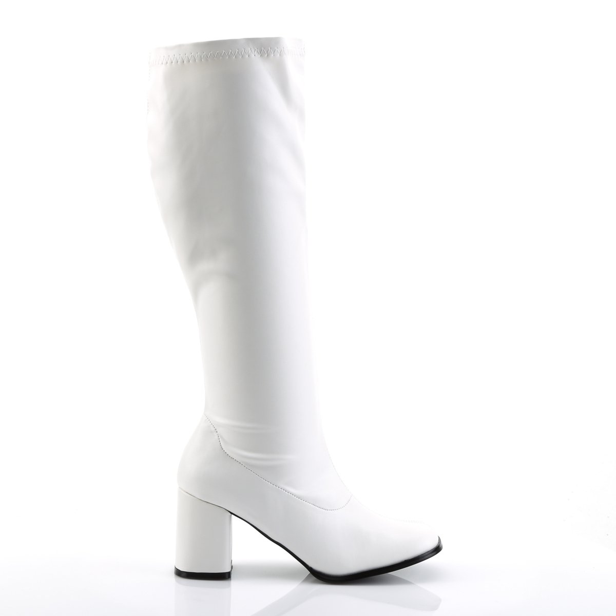 Cette botte sexy est construite avec une tige synthétique flexible faite par l’homme et possède un embout carré, une semelle intérieure légèrement rembourrée, une fermeture éclair latérale et une semelle en caoutchouc fabriquée par l’homme avec un talon carré robuste. Associez cette botte époustouflante à une jupe montante pour un look déchirant. Stretch Pu ou stretch faux brevet pour la partie supérieure et la fermeture éclair latérale. Talon bloc 3" Mollet large Botte extensible. Ces bottes seront le complément parfait à votre costume de danseuse Gogo.