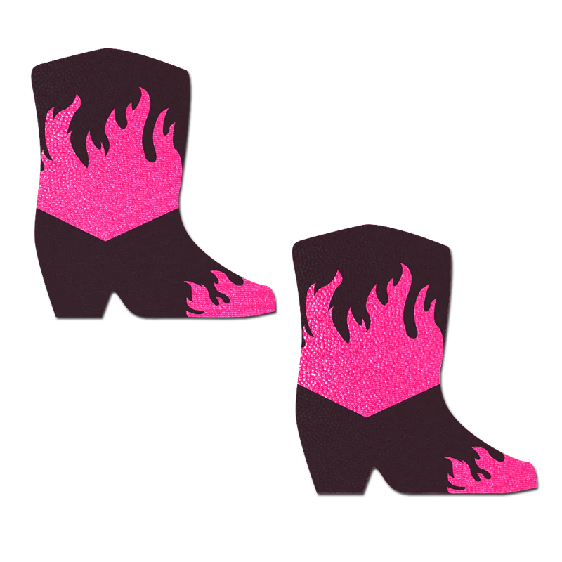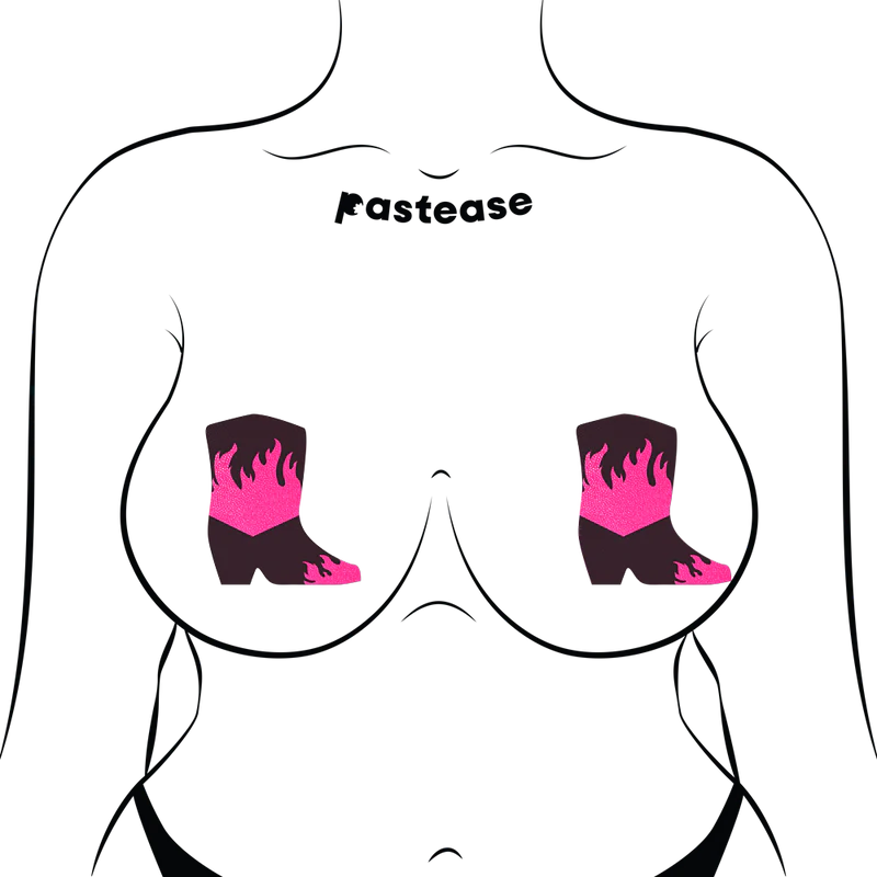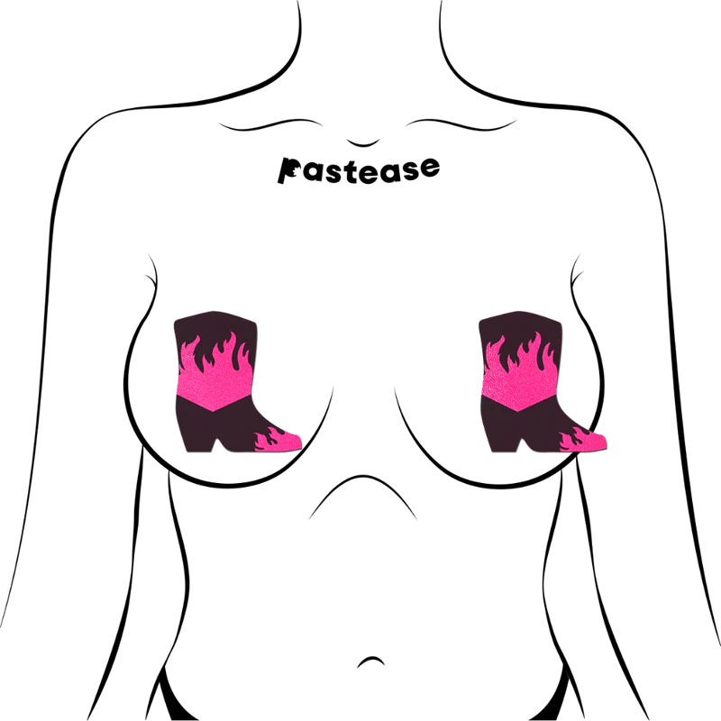 Boots: Neon Pink Flaming Cowboy Boot Nipple Pasties