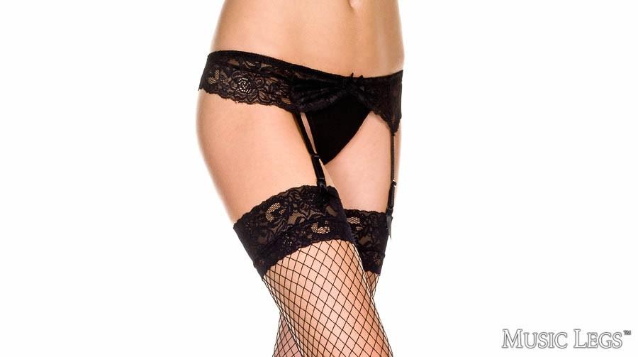 Lace Garterbelt With Fishnet Stockings