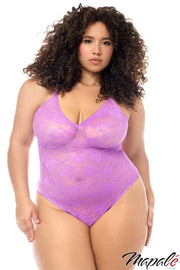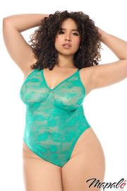 Lace teddy with soft cups, adjustable straps and an hook & eye crotch closure.