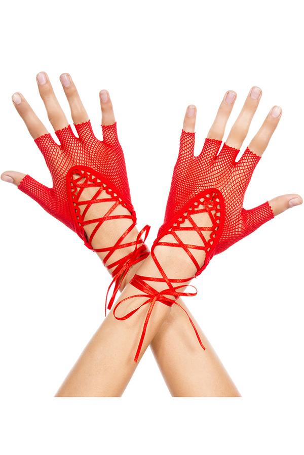 Chauffe-résille sans doigts à lacets jusqu’aux poignets