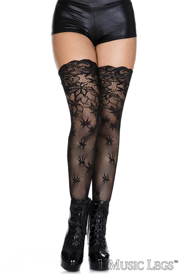 Haut de bande en dentelle avec motif de feuilles en filet de diamants brodés à la cuisse