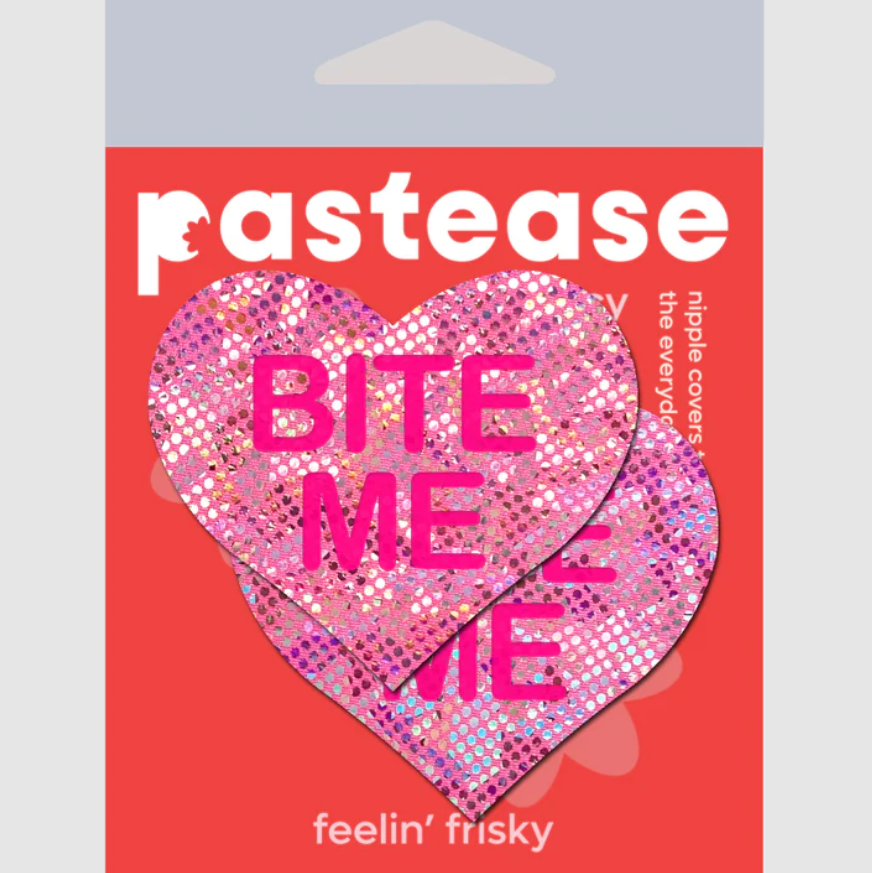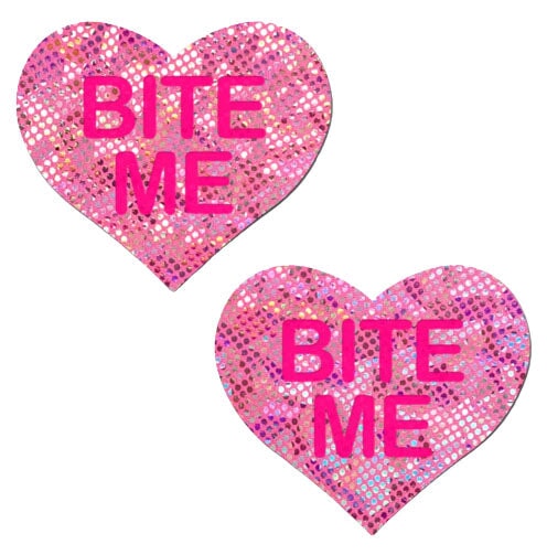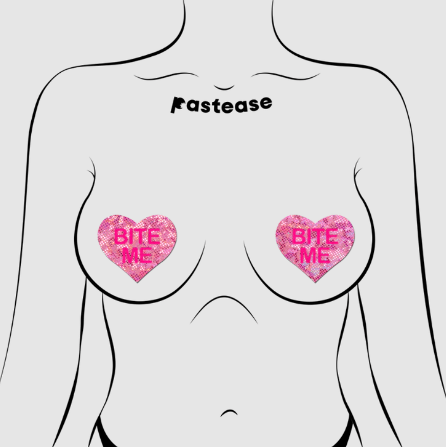 Love: Disco Pink Heart with 'Bite Me' Nipple Pasties