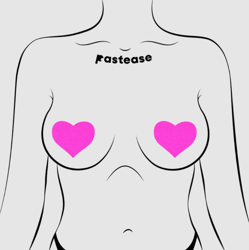Amour : Les pâtés de tétons à cœur néon de Pastease® sont fabriqués à la main aux États-Unis en Lycra durable mais doux, qui forme des courbes et résiste aux plis sur les mamelons durcis.