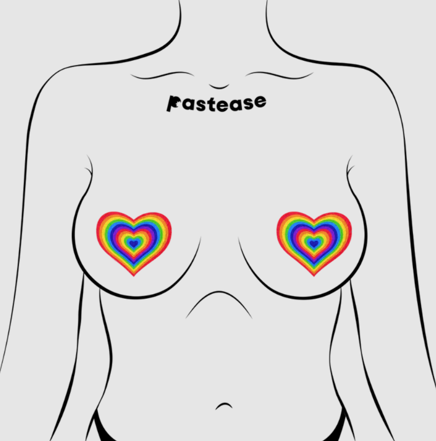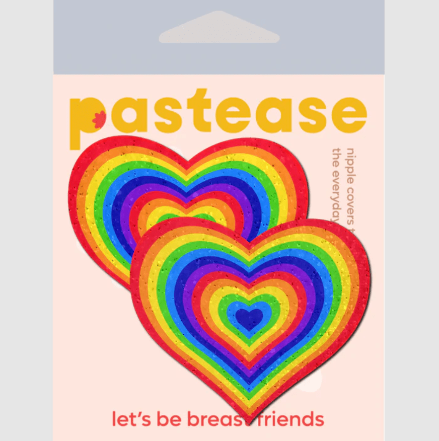 Love: Velvet Rainbow Pumping Heart Nipple by Pastease® are hand-made in the USA of soft velvet material that forms seamlessly to curves and resists wrinkling over hardening nipples.