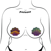 Mermaid Shells Pasties in Opalescent Purple & Gold Seashell Nipple Covers