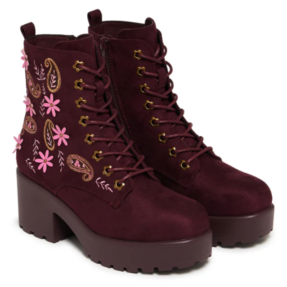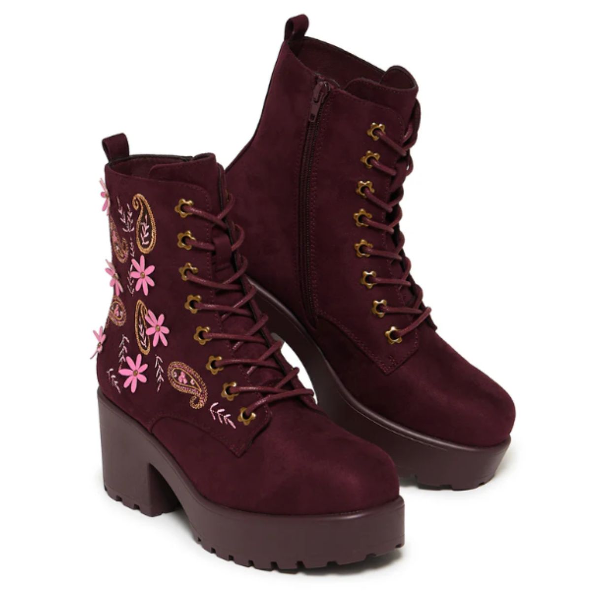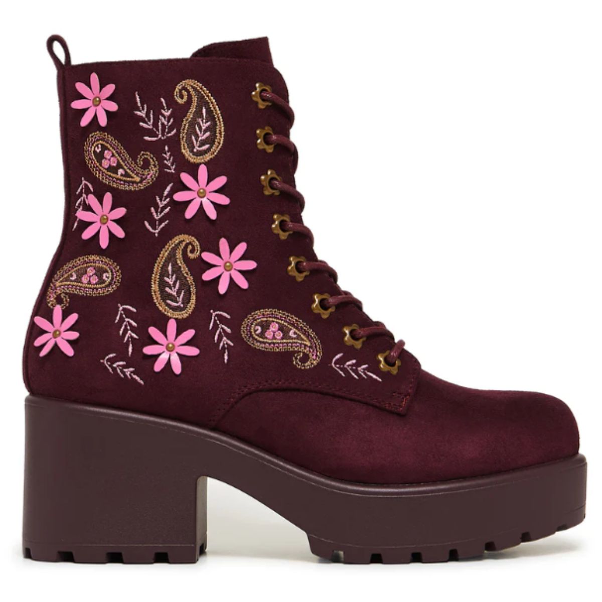 - Tige détaillée en faux suède avec broderie cachemire et appliqués floraux 3D